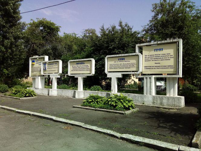 Натомість стенди з інформацією про державні символи (герб, прапор і Гімн) пропонують забрати.