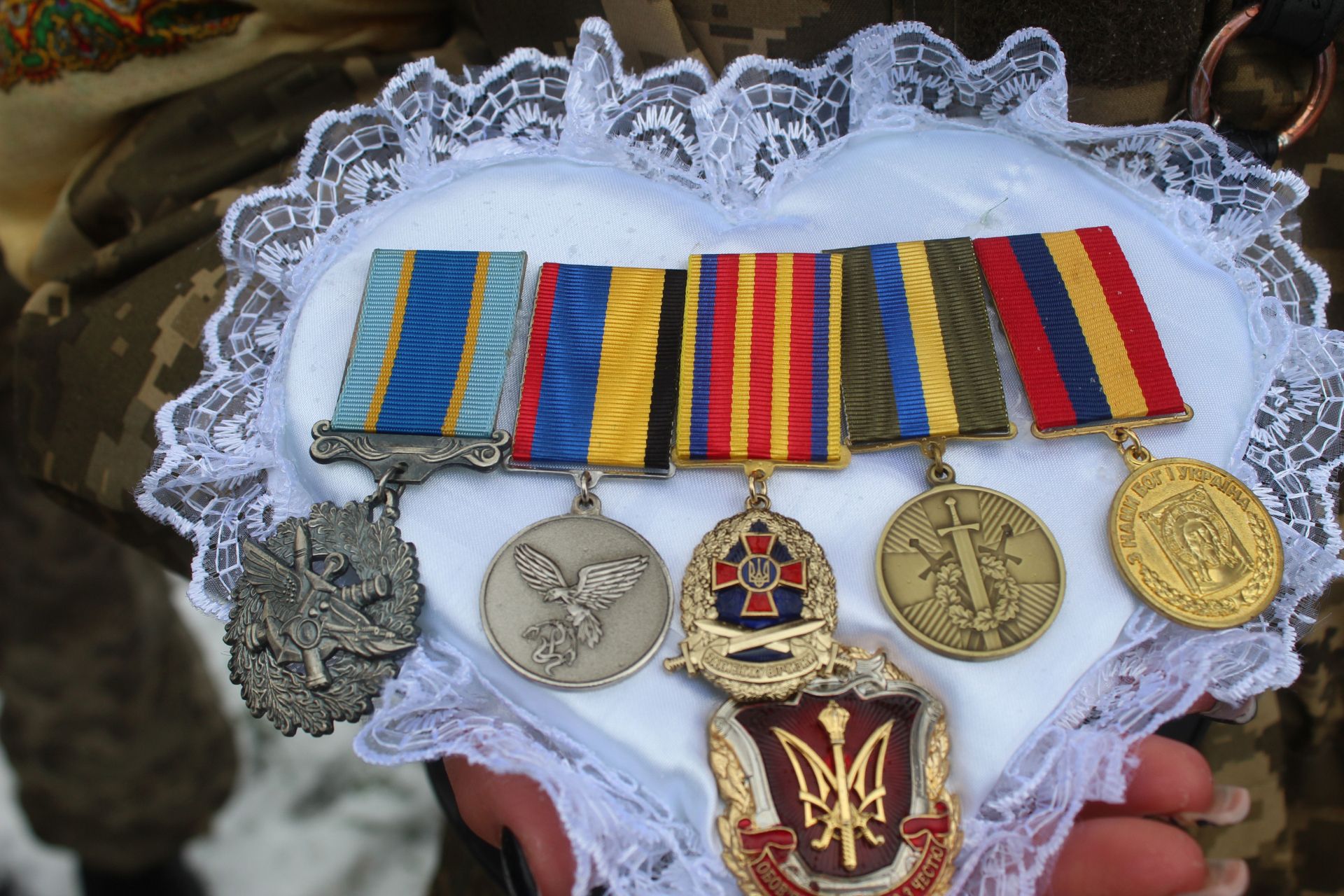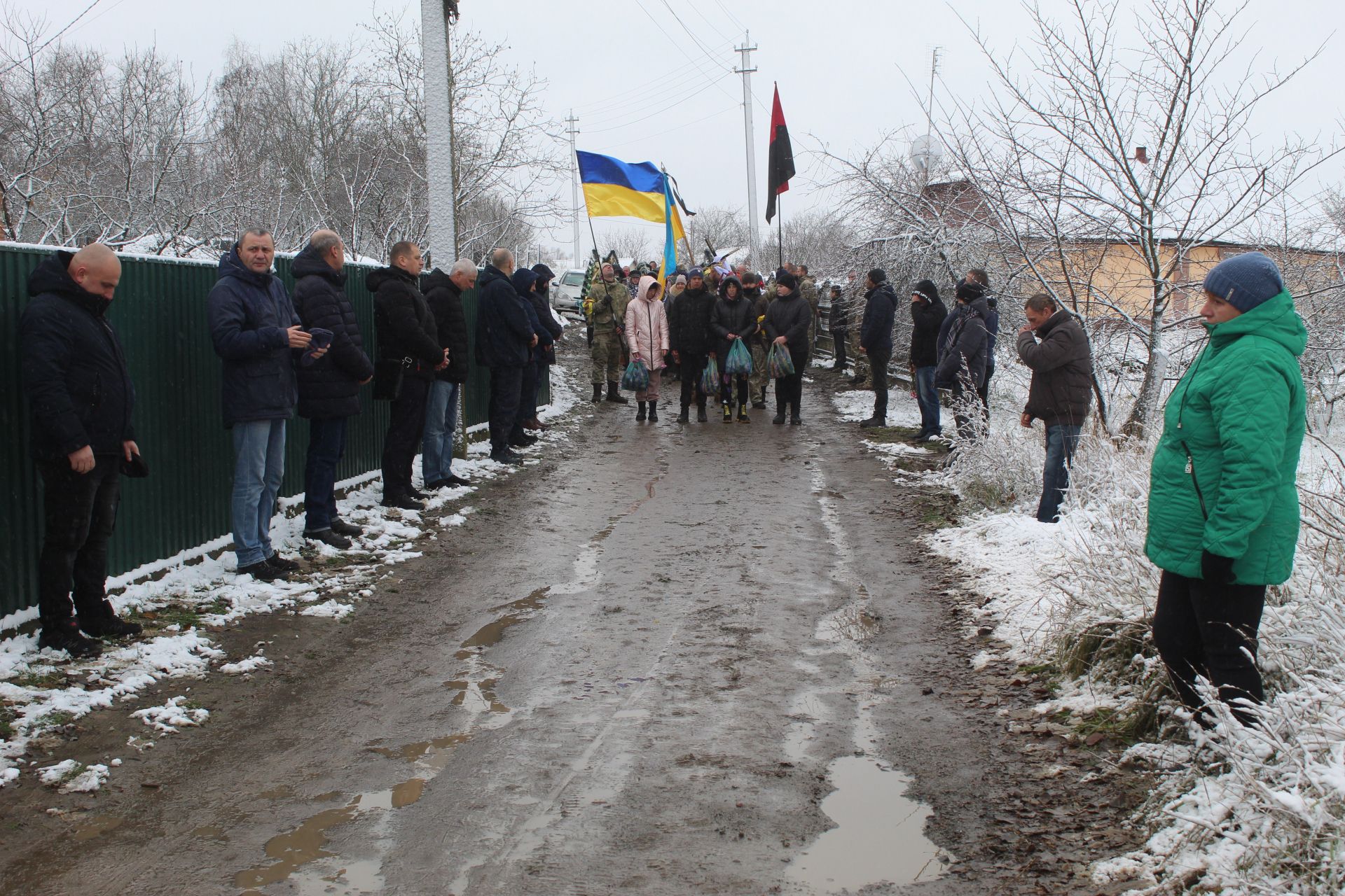 Після служби Божої траурна колона взяла курс на площу. Попереду колони несли прапори, кошики квітів, портрет воїна, на подушечці — його нагороди.