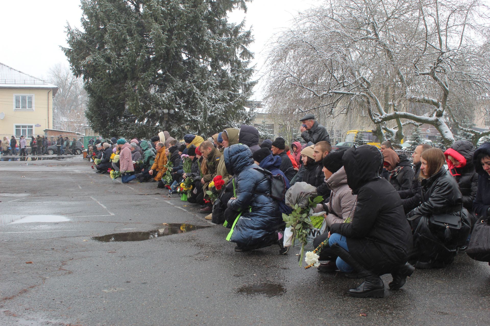 Після мітингу скорботи із нашим захисником стали прощатися. Сергія любили й поважали не тільки в селі, а й в Козятині. Рідні, родичі Героя в сльозах обнімали труну, друзі, знайомі, однокласники віддавали шану Сергію, опустившись на коліно.