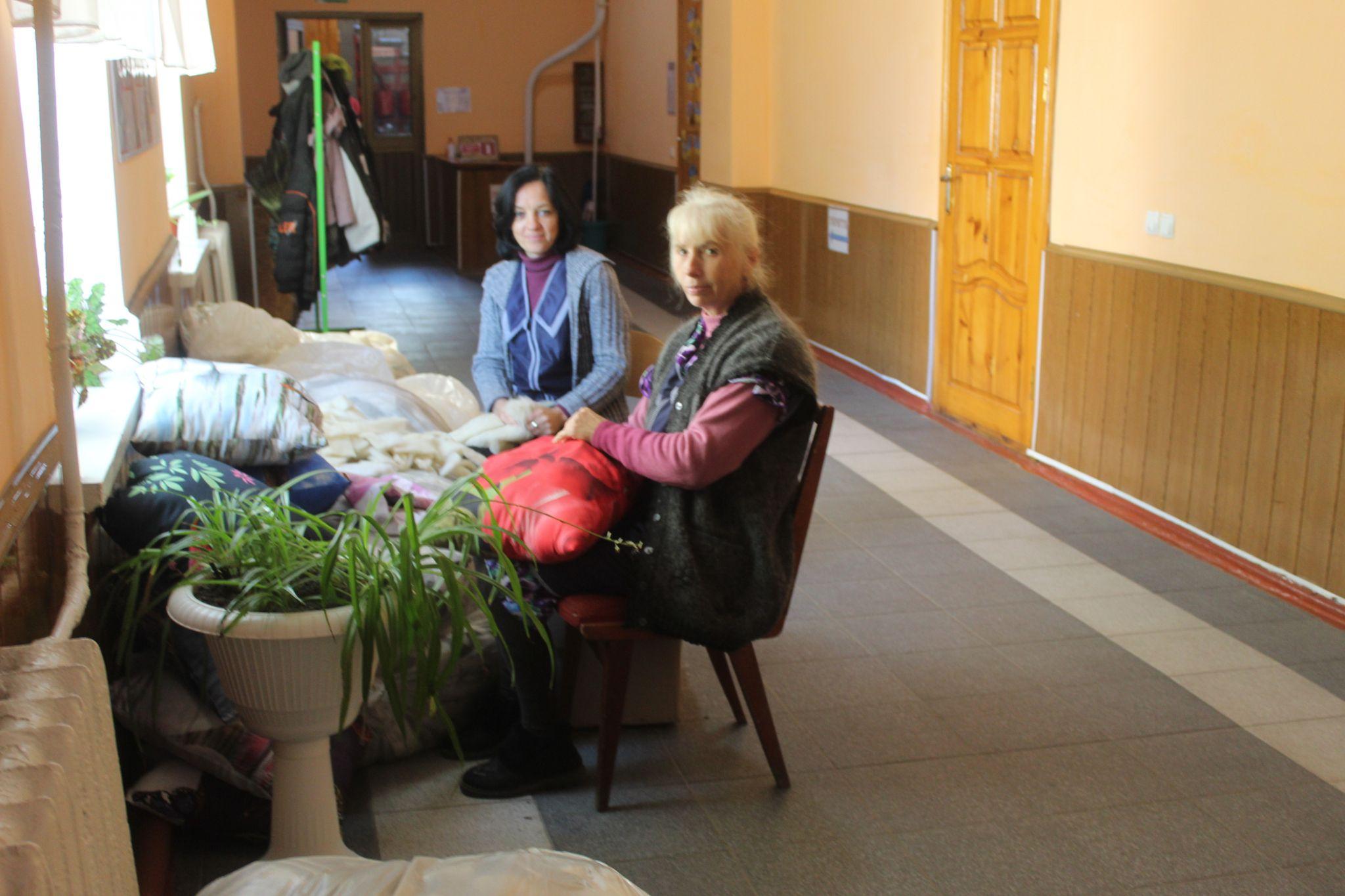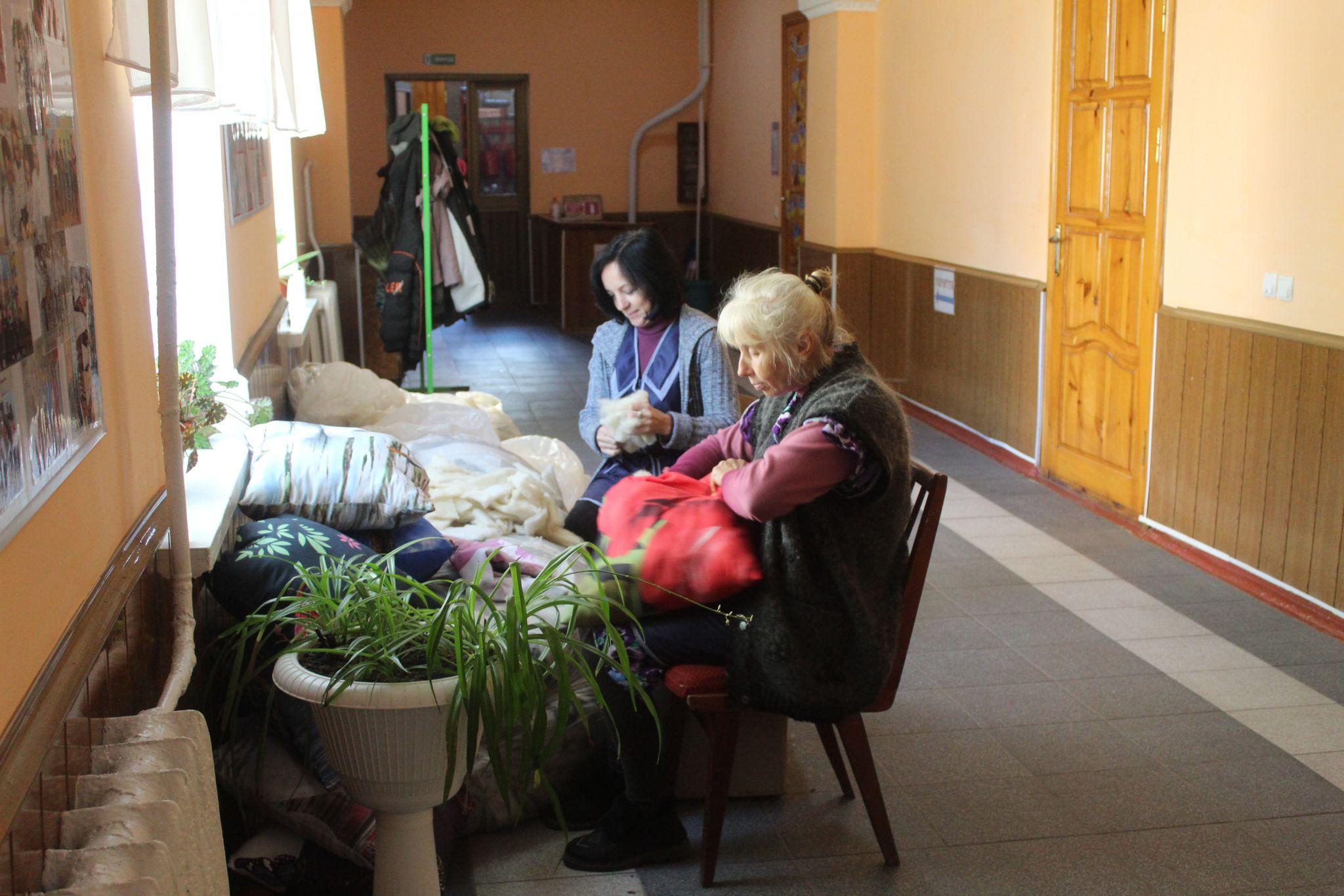 У виділеному приміщенні поставили ручні, механічні швейні машинки. Там же з тканини шиють заготовки. В цеху, який влаштували в коридорі гімназії, подушки наповнюють і повертають назад, у швейний цУ гімназії №9 майже з першого дня повномасштабного російського вторгнення включилися у волонтерську роботу. Всією тоді ще школою плели маскувальні сітки, збирали кошти на потреби ЗСУ. ех.