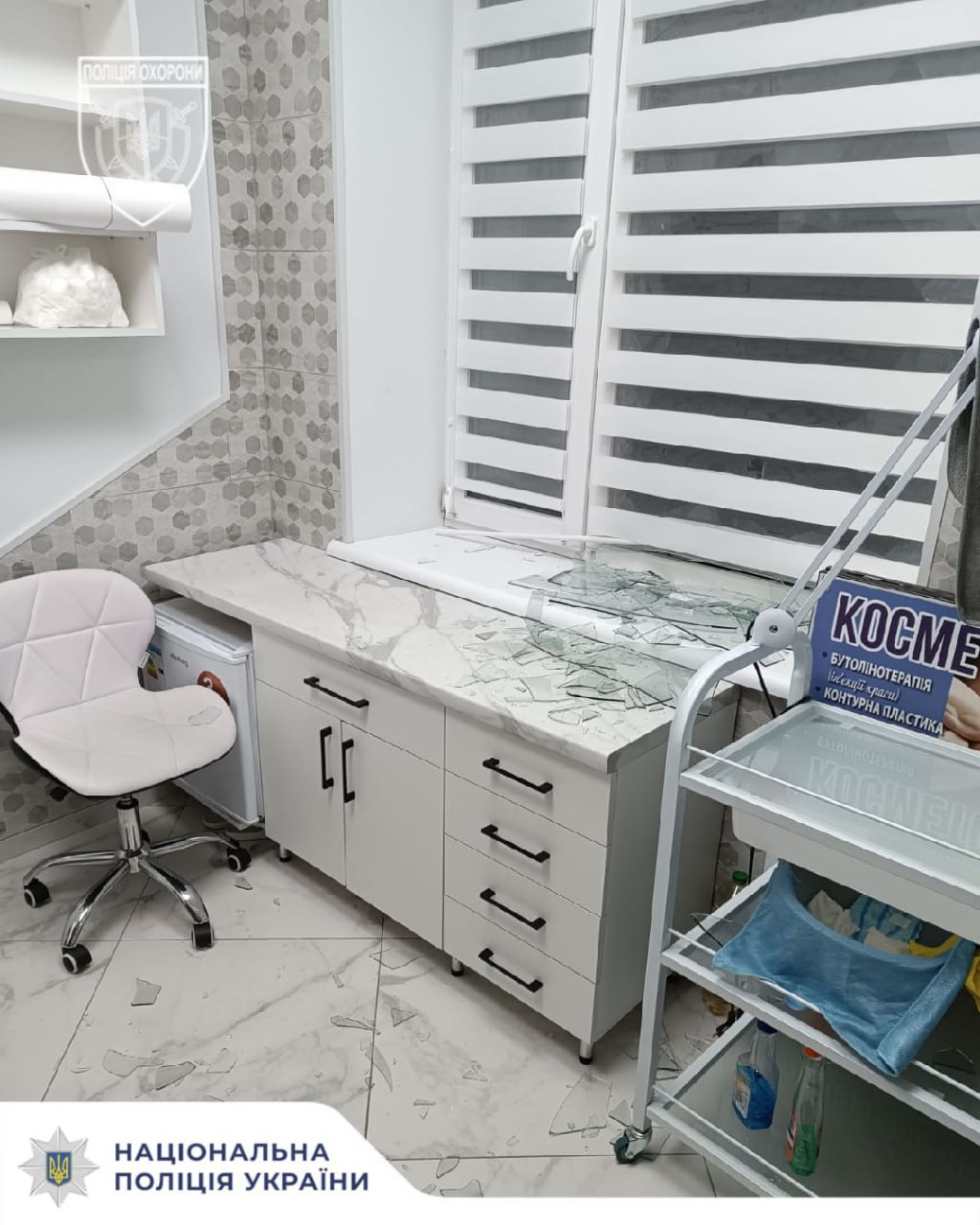 На виклик виїхав наряд реагування Хмільницького районного відділу поліції охорони. Уже за дві хвилини поліцейські прибули на місце події та виявили пошкоджені вікна медзакладу.