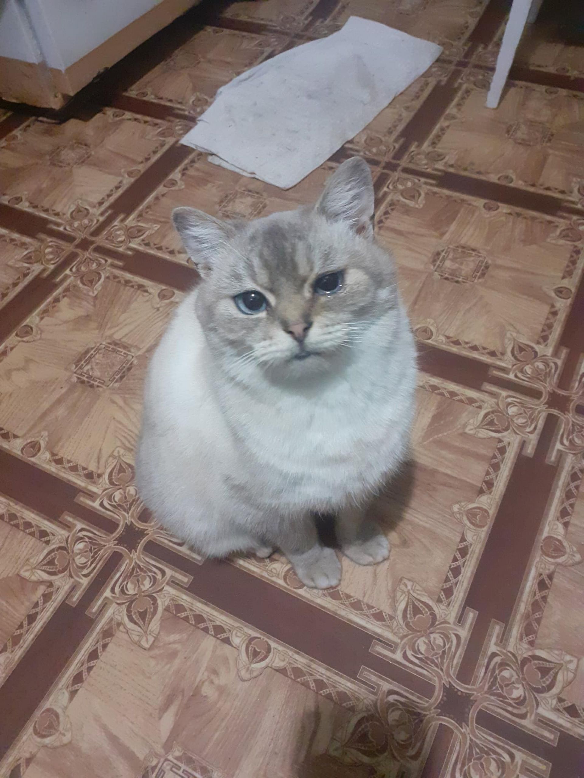 — Колись його власник викинув, — каже Людмила. — Потім його забрали в сім’ю. Спочатку було все ніби добре, але зараз він уже господарям набрид. Минулого року його викинули на зиму і зараз знову повторюється та сама історія. Він породистий, має блакитні гарні очі, привчений до лоточка, молодий, гарний, активний. Було б класно віддати його в хорошу родину, але так, щоб його не відпускали без нагляду на вулицю. Він звик до лотка і до подушок, тому було б добре віддати його в квартиру відповідальним людям.