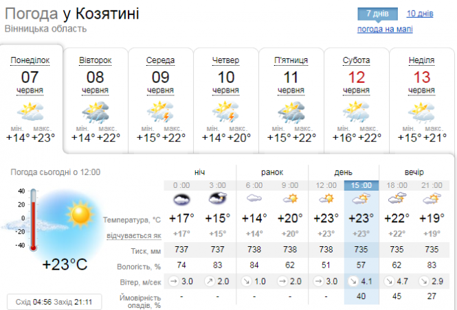 Ось яку погоду прогнозують у Козятині