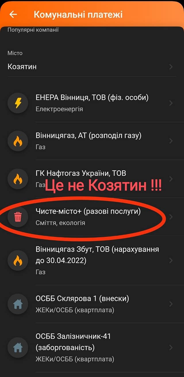 Сплачують у «Чисте місто», але не в наше. Козятинців просять перевіряти реквізити