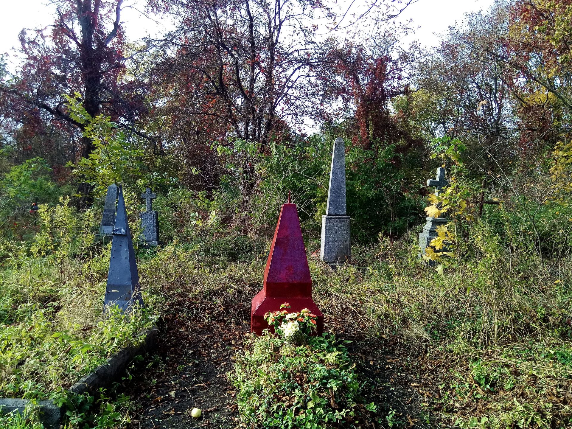 До більшості пам’ятників дійти просто неможливо через густі зарослі. Так само важко робити фотографії, адже високі чагарники подекуди майже повністю затуляють об’єкт у кадрі.