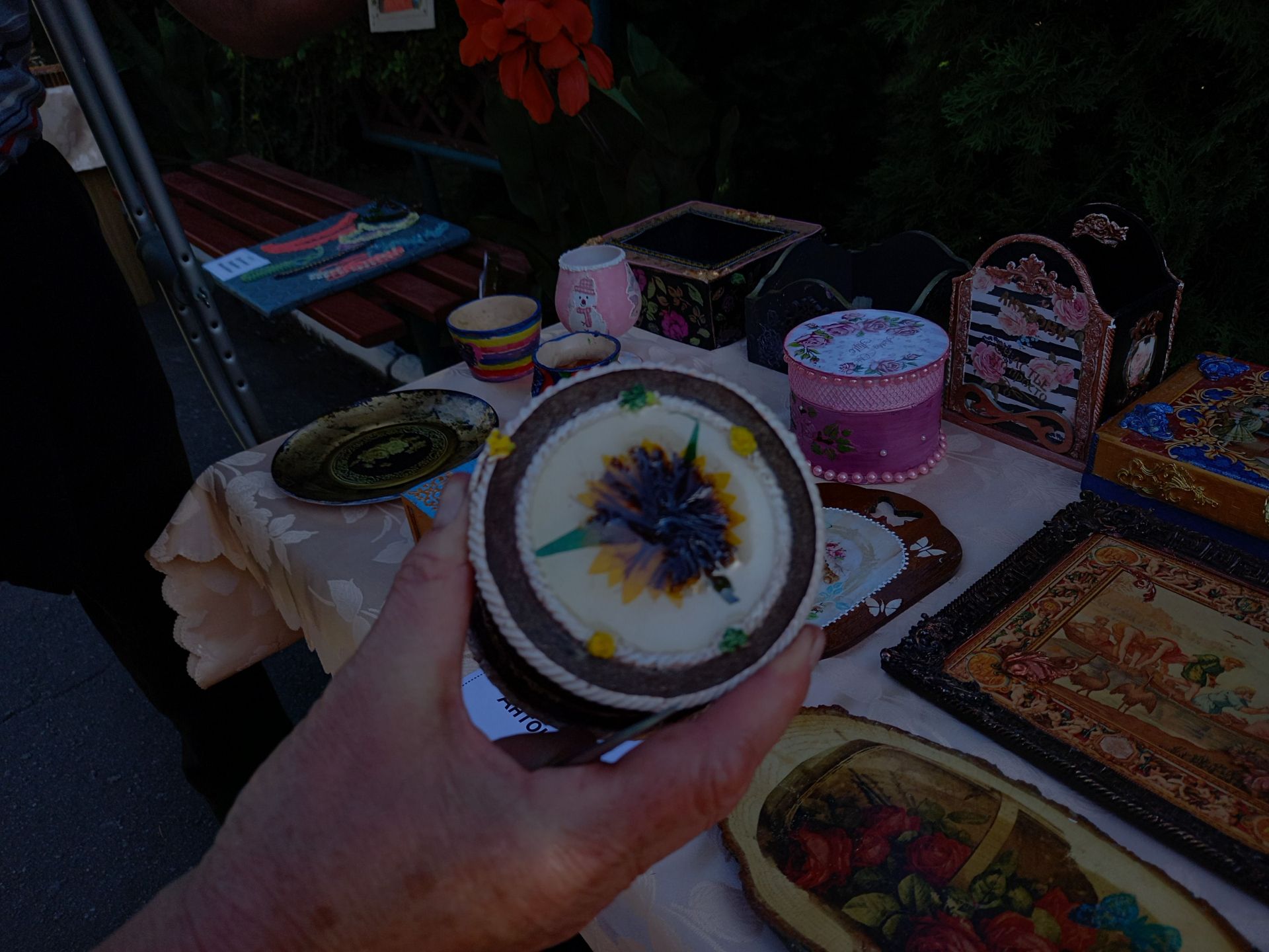 — Це я вчора ввечері закінчила, — показує Лариса Казмірчук звичайний лоток з-під яєць, декорований малюнками. Вона — викладач гуртка декоративно-прикладного мистецтва у міському терцентрі. Роботи її учениць, а також колег представили на виставці. Її приурочили до Міжнародного дня людей похилого віку, який відзначають 1 жовтня.