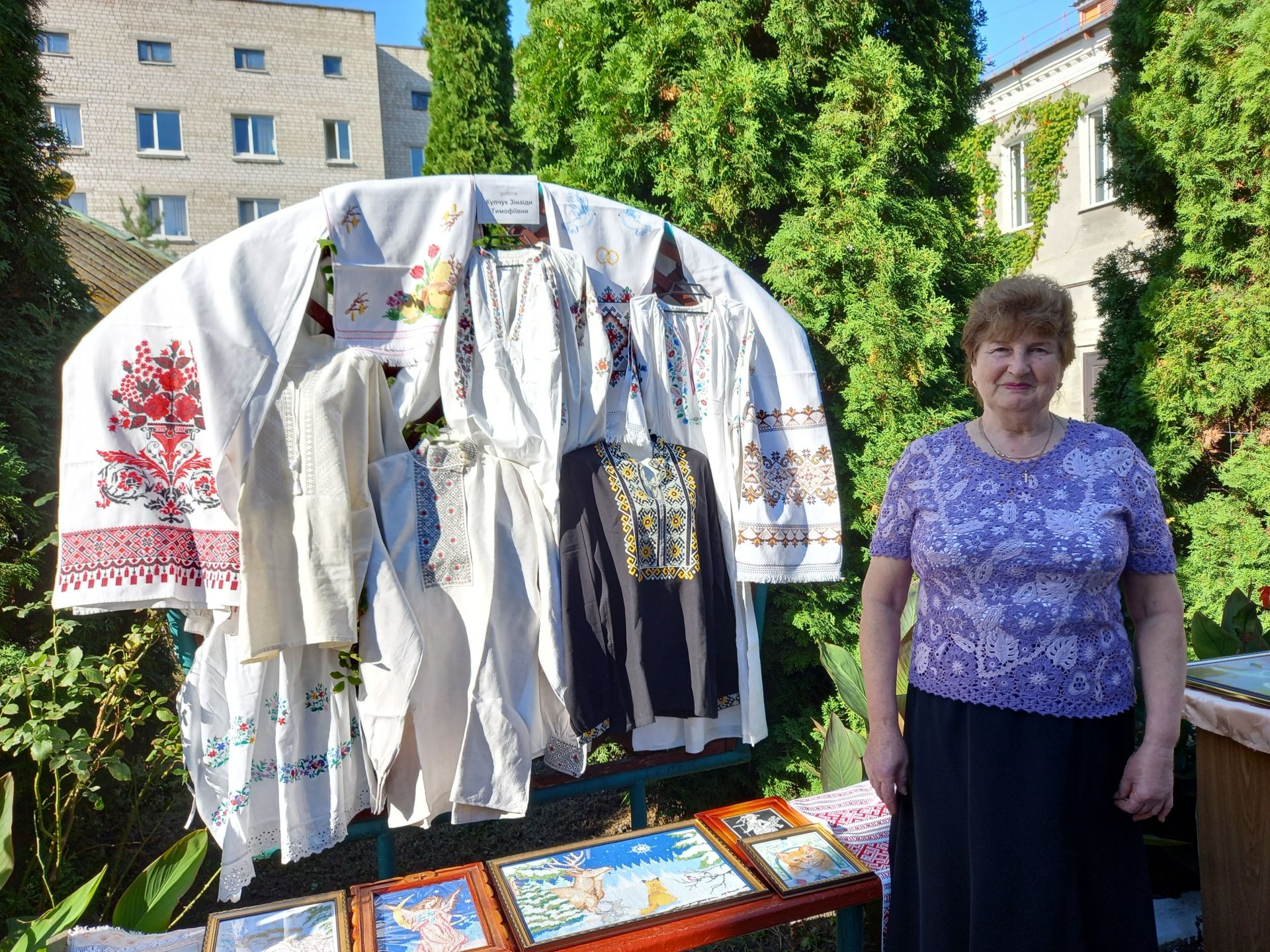 — Я намагаюся виставляти свої роботи, — каже майстриня. — Навіть коли син навчався у Вінниці, я теж в навчальний заклад давала свої роботи. І старовинні також. Тому що уявіть, 32-33 рік, голод, світла немає і подивіться, як мілко штапівочки вишиті, ця гладь. Ви подивіться, при такому освітленні як люди шили.