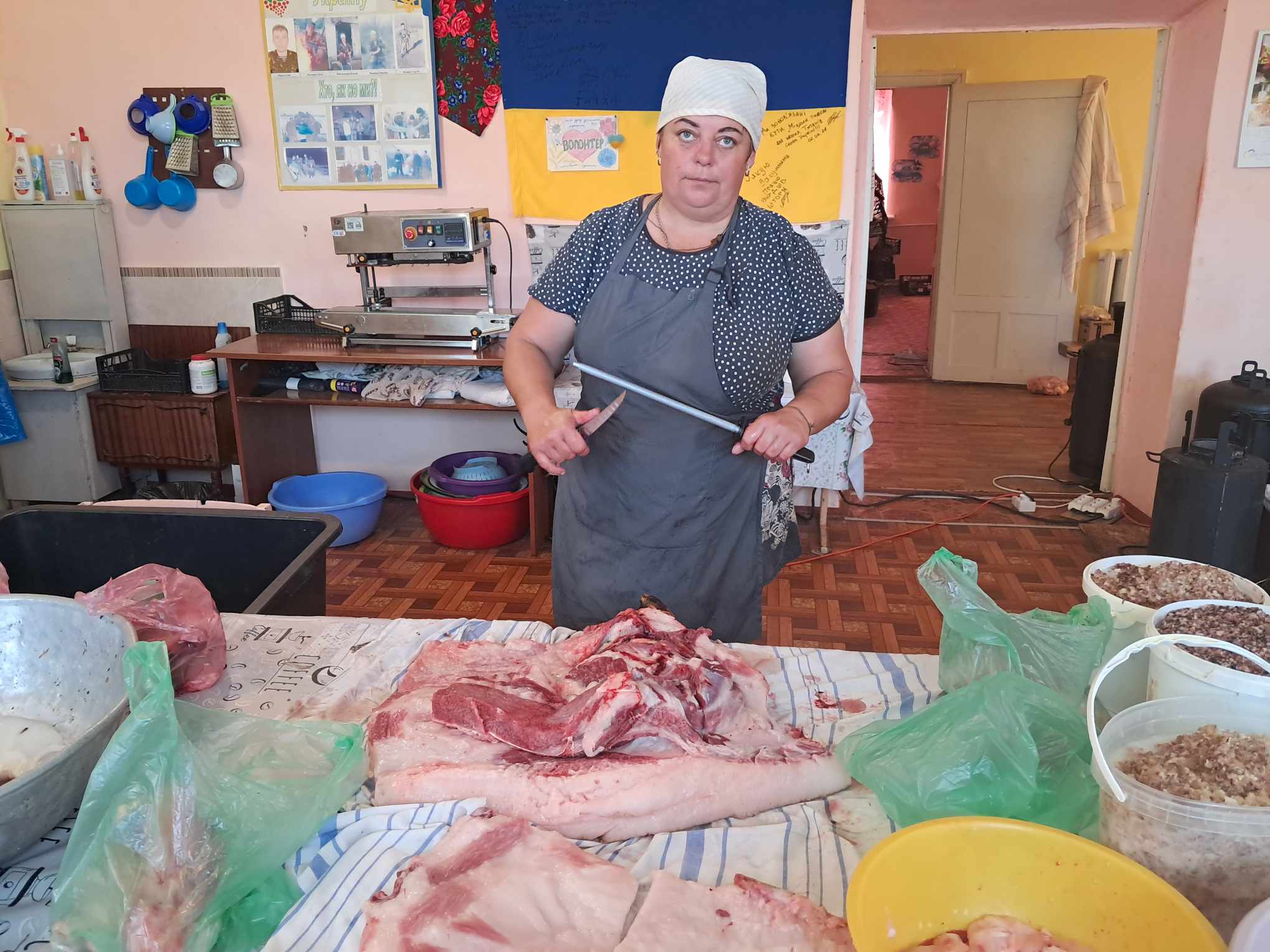 Попросили пані Ольгу познайомити з жінками, що у цей день прийшли допомагати.