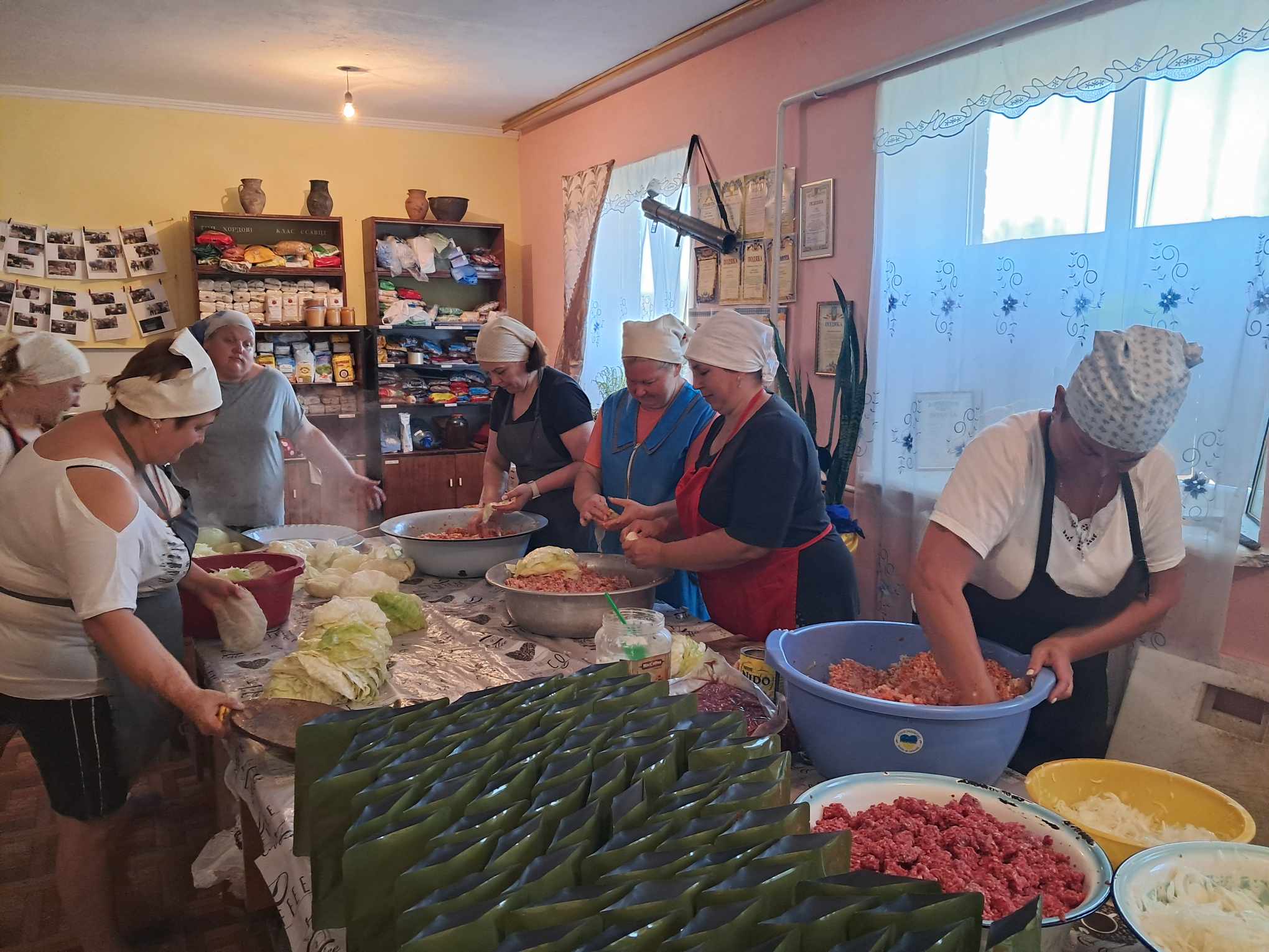 — Емоції зашкалюють, ініціативна група «Міцний тил» знову встановив новий рекорд! Сьогодні ми готували голубці — одну з улюблених страв наших захисників. Завдяки всім дівчатам, які сьогодні завітали до цеху, ми зробили 7800 шт голубців, а це буде більше 1000 пакетів готової страви. Це більше однієї тисячі ситих наших хлопців, — розповіла волонтерка Ольга Пирогова, — А ще одна причина гарного настрою — в цеху стало прохолодніше. Раніше, у спеку, працювали на межі людських можливостей, не до пісень було. Сили давало, що у хлопців ще було жаркіше і вони витримали. Зараз більш менш комфортна погода, то чому б не заспівати, коли є гарні голоси