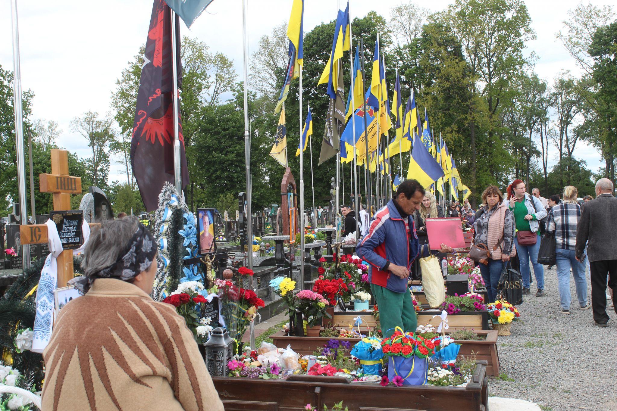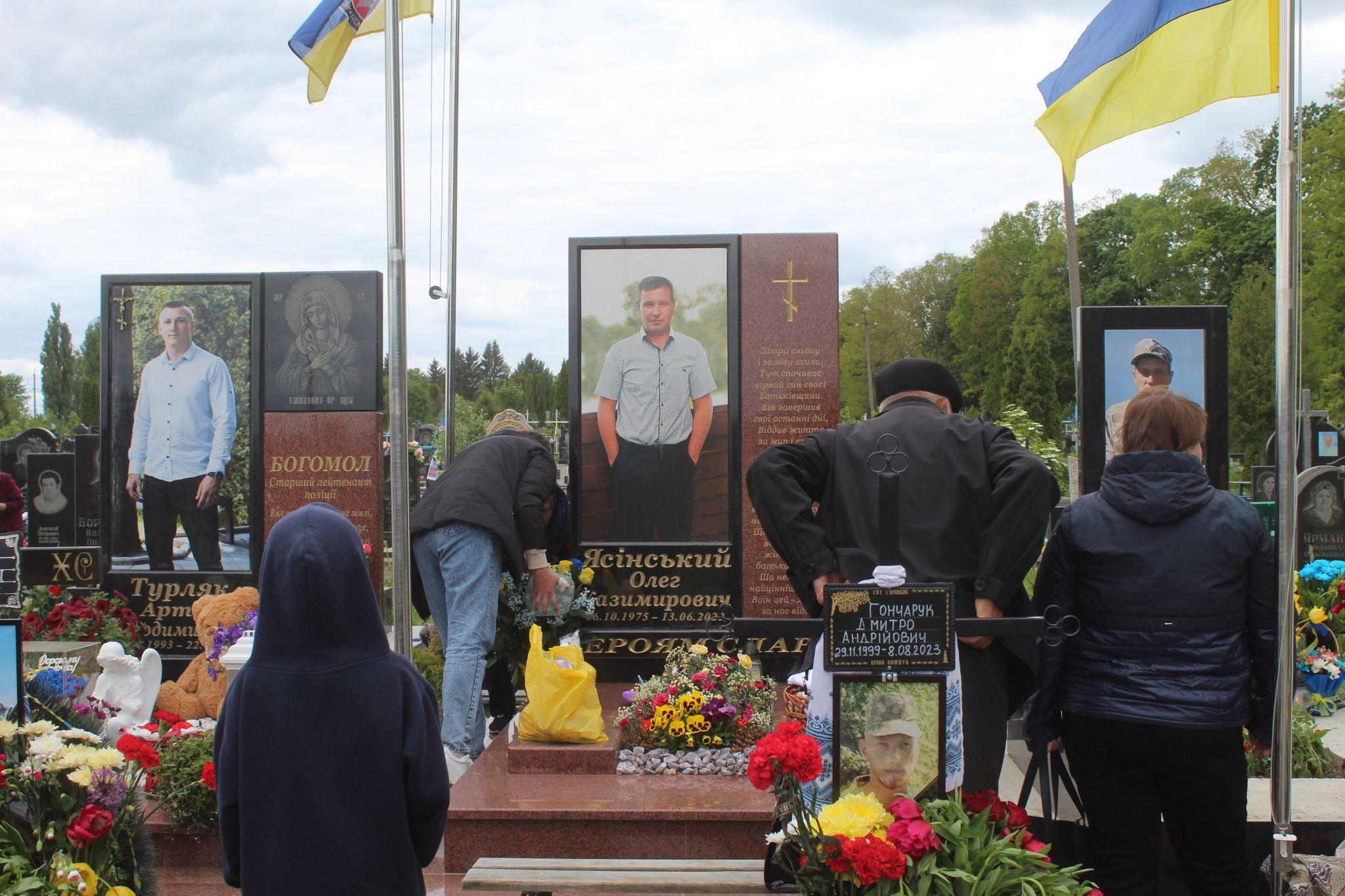 На міському кладовищі людей було дуже багато, а найбільше — біля Алеї Слави. Батько Героя Богдана Іщука Олег Іщук мовчки дивився в очі сину, про що вони говорили — тільки батьку відомо. Дружина Героя Олега Ясінського Наталя Ясінська майже кожного разу йде на кладовище з бутлем води. Не змінила вона свою звичку на Проводи. В цей день вона також поливала квіти.