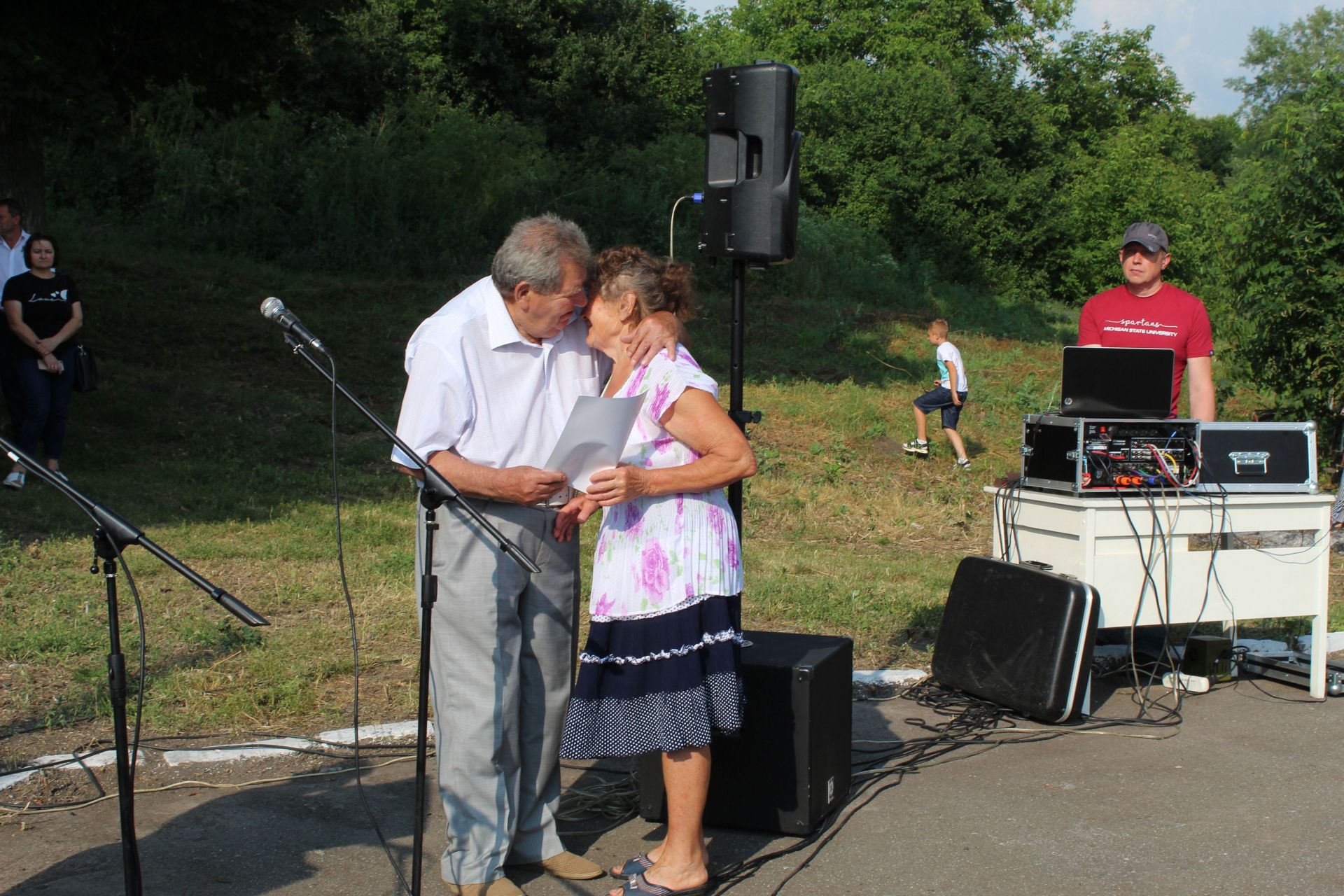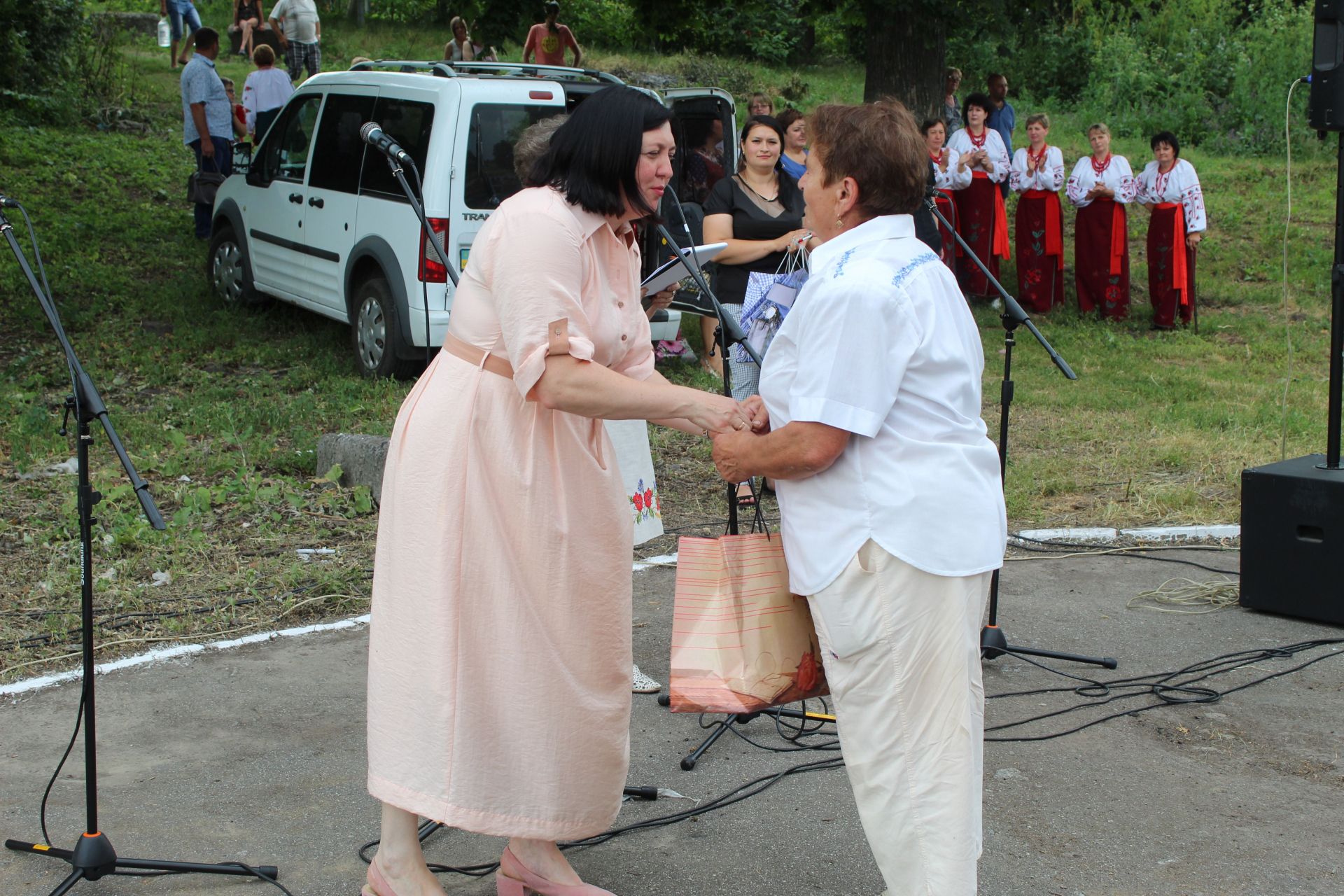 Коли “Горлиця” була на сцені в небесах стало гриміти. Організатори прийняли рішення спочатку нагородити чемпіонів подружнього життя та пари ювіляри, молоді сім’ї і тих кому лелека приніс майбутнє Титусівки. Згадали за тих хто ціною свого життя відстоював мир на планеті і воїнів, які воювали на сході України. Тих хто героїчно повернулися в рідні домівки бурхливими оплесками зустріли титусівчани. Нагородивши всіх на сцену знов мали вийти артисти та не вийшли Хоч в селі чекали дощу як ніколи та ливень, який пронісся Титусівкою, зробив артистам медвежу послугу. Через заходи безпеки здоров’я співочих і танцювальних колективів організатори святкового дійства вирішили музичний супровід не проводити. Згадали артисти старі часи коли концерт не залежав від електрики. Гармошка веселила душі селян і після дощу, і після ливня.