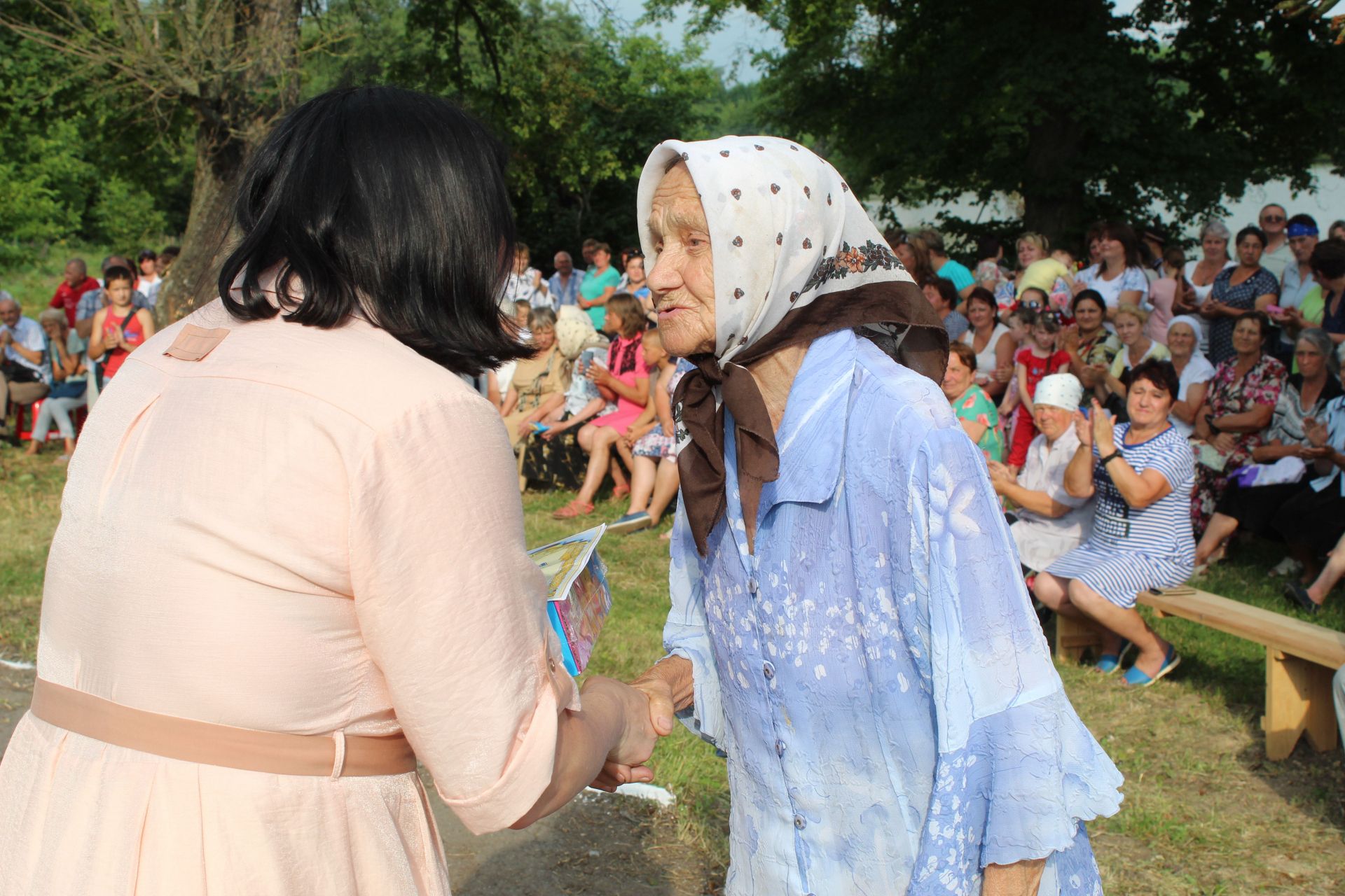 Після коротеньких промов Козятинської еліти вони з головою ветеранської організації Федором Кропивою стали вітати ветеранів праці та довгожителів Тетусівки. Після церемонії нагороджень слово надали виходцю Титусівки Аліні Діденко. Вона, як жителька яка повернулася в село, підкреслила, що село Титусівка переживало, як роки розквіту і швидкого розвитку – так і роки занепаду. Про ті роки існування нашої малої батьківщини багато, хто із нинішніх жителів ще пам’ятає. На сьогоднішній день в селі проживає 596 жителів, багато жителів не є титусівчанами