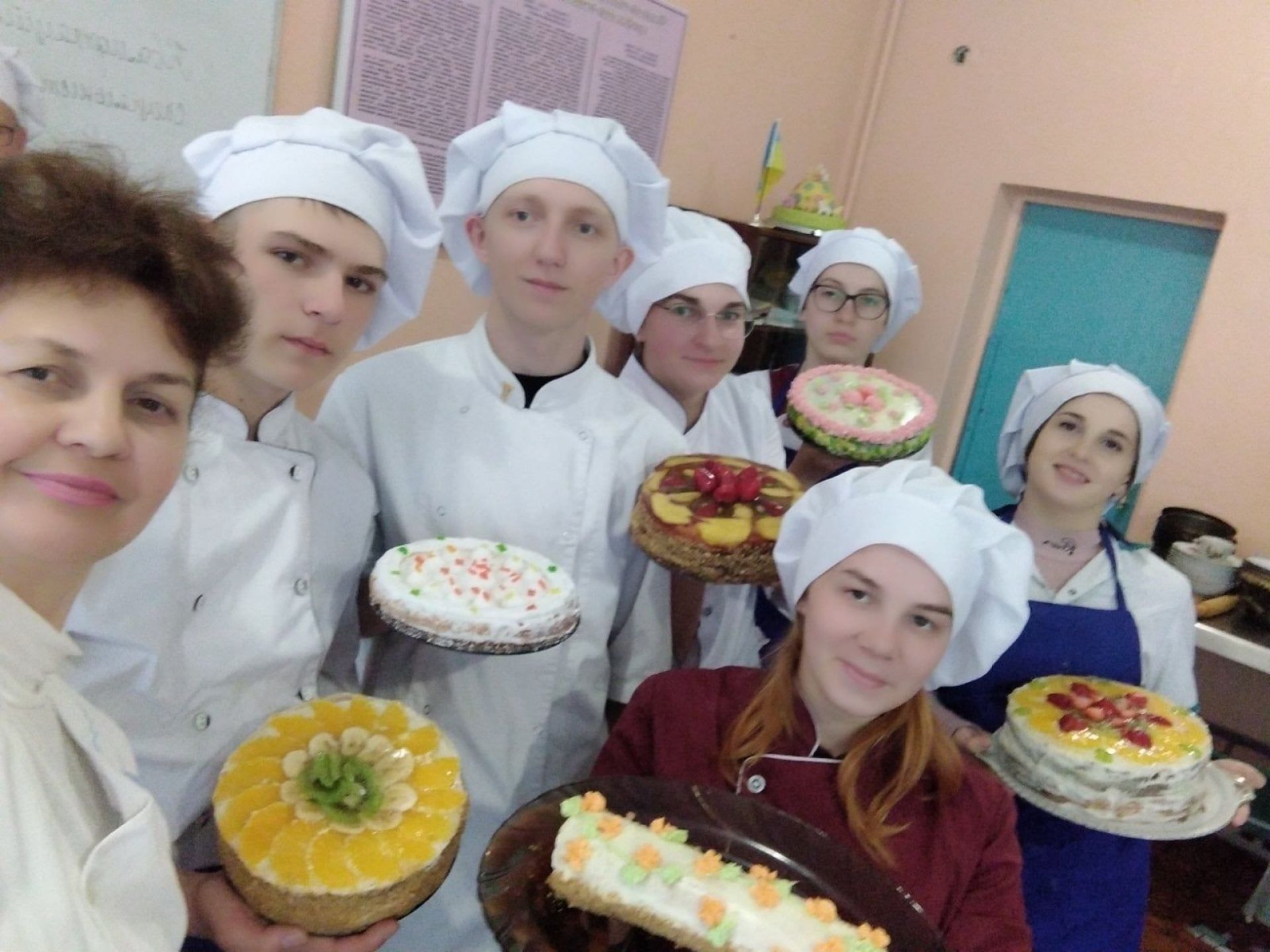 Здобувачам освіти потрібно було приготувати тісто, випекти коржі чи розмазку, приготувати сироп для просочування, крем чи желе, сформувати торт, нанести малюнок на поверхню. Визначити якість готових виробів.