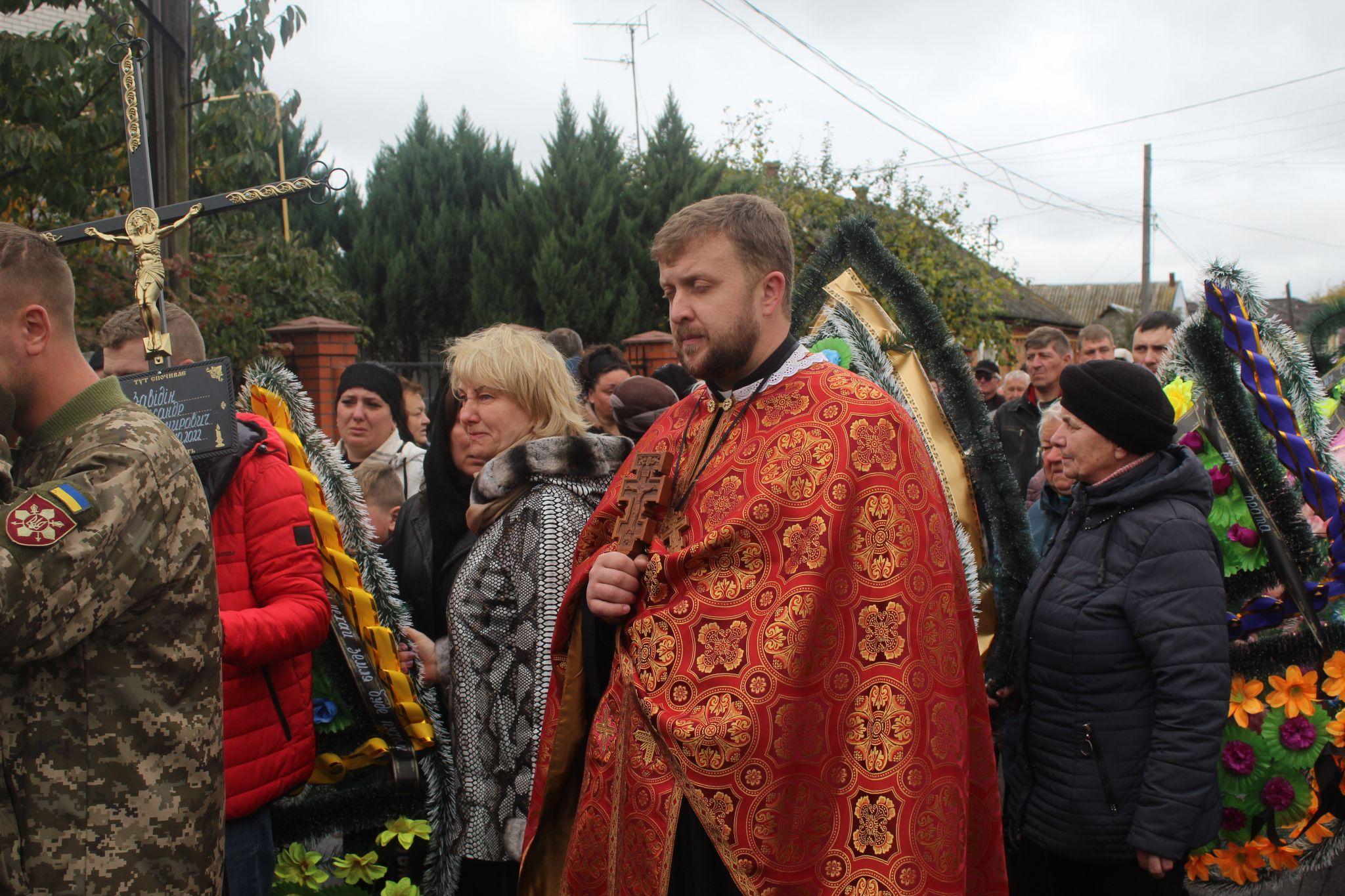 Службу Божу за загиблим воїном проводив священик Української Греко-Католицької церкви Антон Борис, а по завершенні заупокійної молитви траурна процесія взяла курс на площу міста. На розі вулиць Пилипа Орлика та Грушевського колона Олександра з’єдналася з траурною ходою загиблого на війні мешканця Іванковець Артема Москаля.