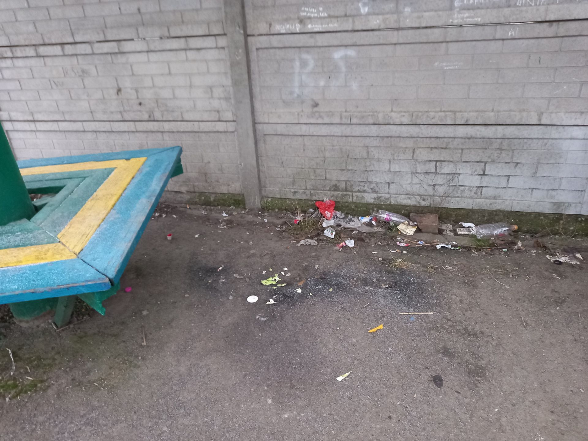 Додамо, що жодної урни на зупинці немає. Можливо, якби стояв смітник, пляшки з-під пива, недопалки, обгортки від цукерок та інше сміття кидали б до урни, а не на землю.