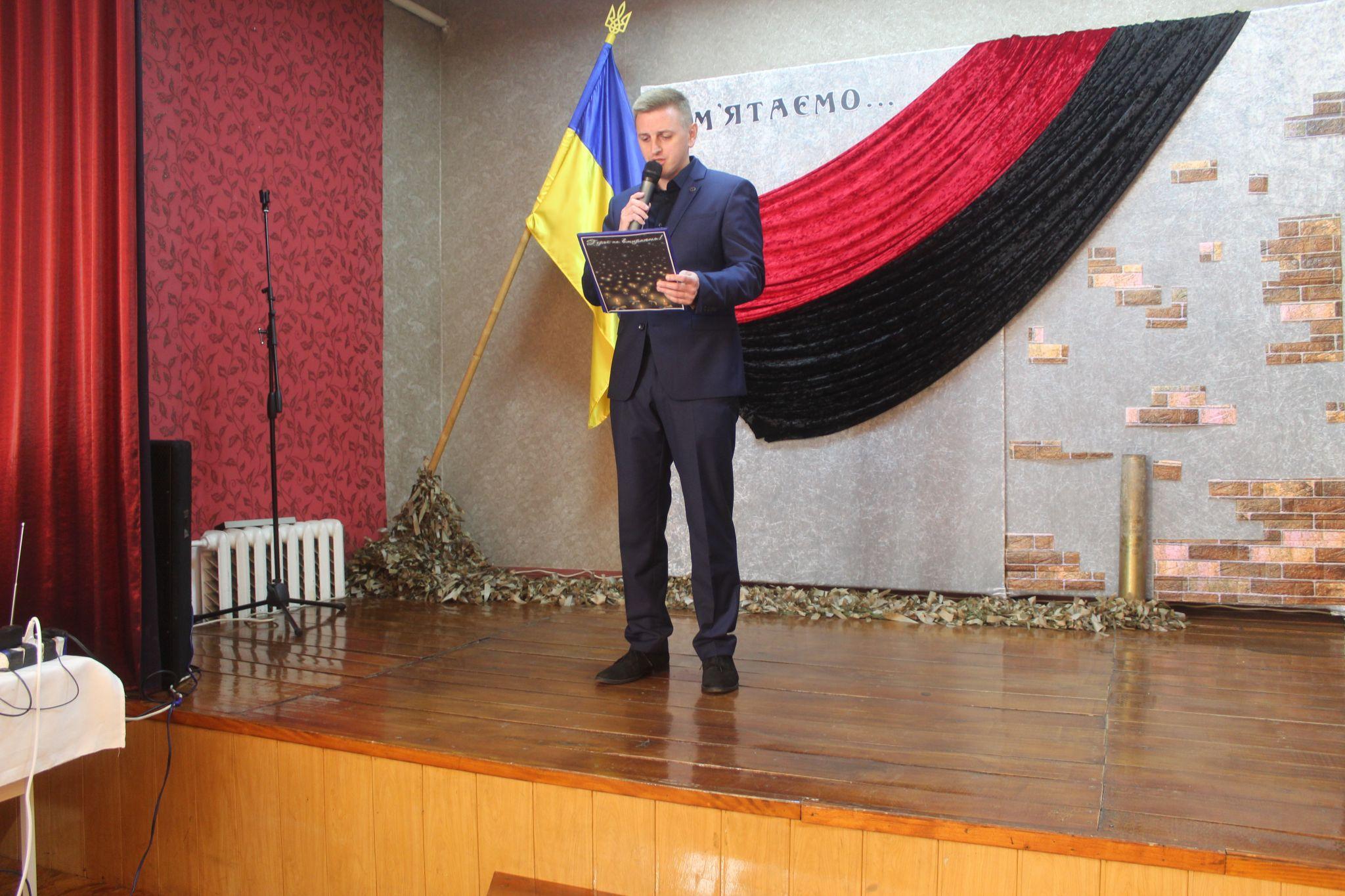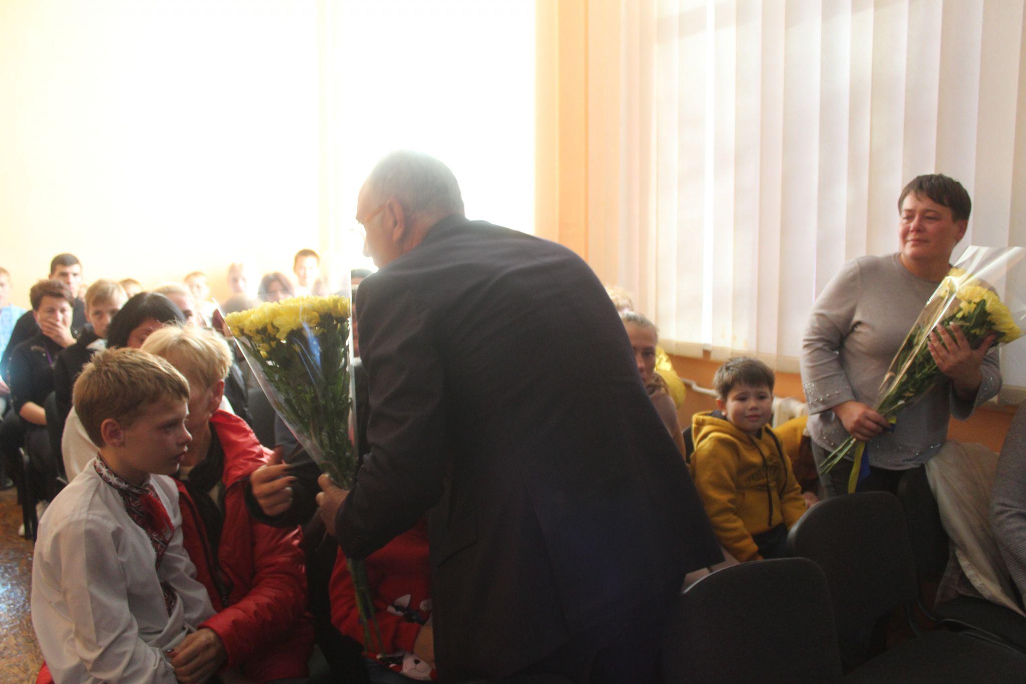 Коли розповідь, якими були наші Герої, добігла кінця, слово мали директор гімназії Олег Заїчко та міський голова Тетяна Єрмолаєва, вони низко вклонилися родині Героїв та вручили їм букети квітів.