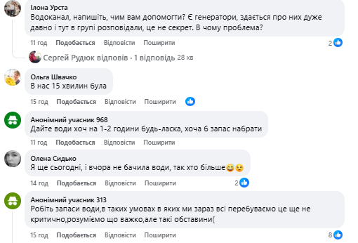 «Тим часом робота кипить, ми намагаємось покращити ситуацію із світлом і сподіваємося,що незабаром стабілізуємо подачу води» — пишуть у водоканалі