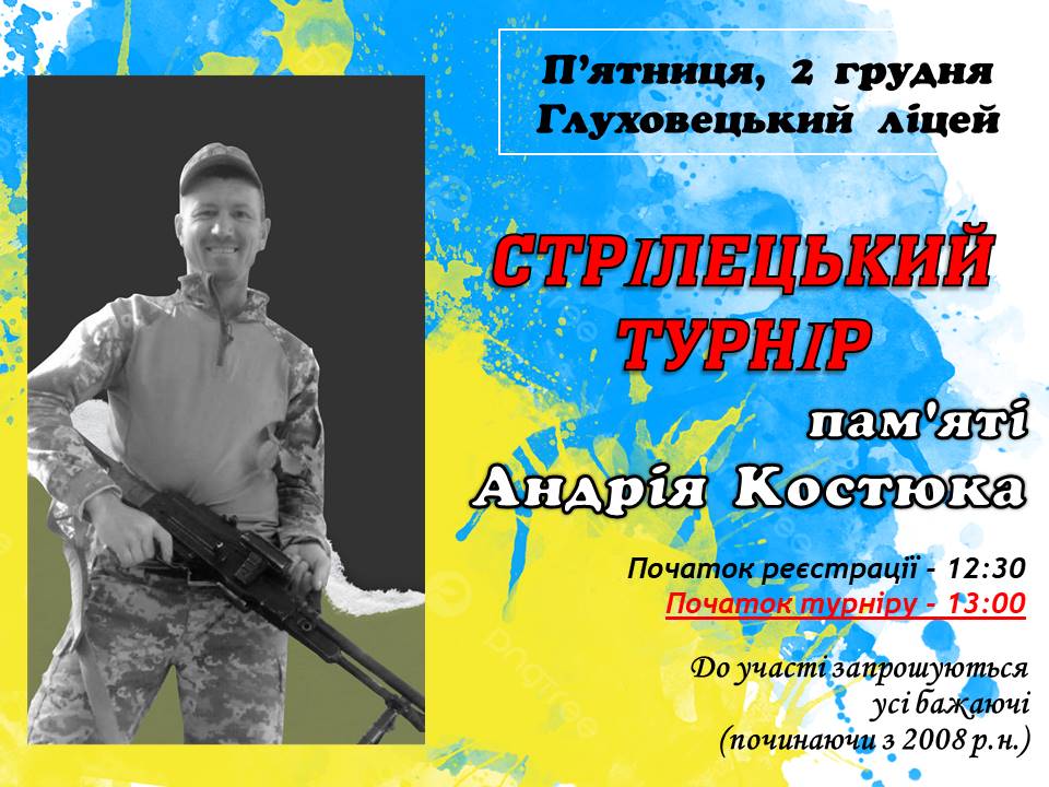 - У п'ятницю, 2 грудня в спортивній залі Глуховецького ліцею відбудеться стрілецький турнір пам'яті Андрія Костюка