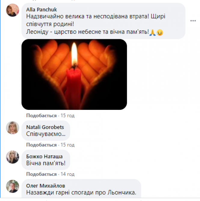 — Висловлюємо щирі слова співчуття з приводу передчасної смерті Леоніда Леонідовича Маркітана, — йдеться в дописі. — Чудового багаторічного друга, ветерана спорту, високопрофесійного майстра, людини з безмежним запасом доброти, любові, мудрості і життєрадосності. Разом із рідними і близькими, поділяємо скорботу у цей тяжкий час. Сумуємо разом з вами. Проте, світлі спогади про Леоніда, який залишив по собі добрі справи та чесно прожив своє життя, завжди будуть сильніші, ніж смерть.