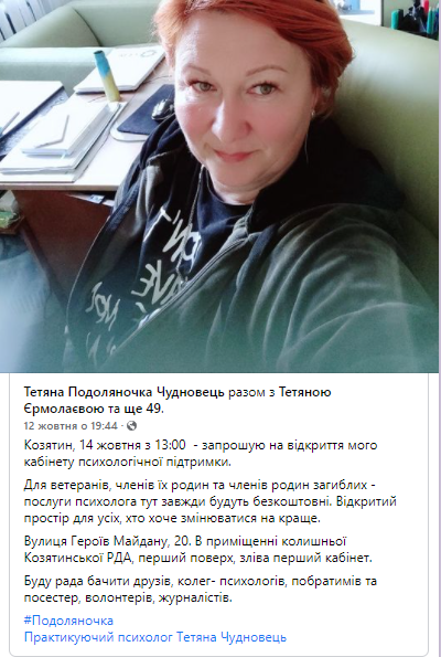 Нагадаємо, відкриття кабінету Тетяна анонсувала на своїй сторінці у ФБ 12 жовтня
