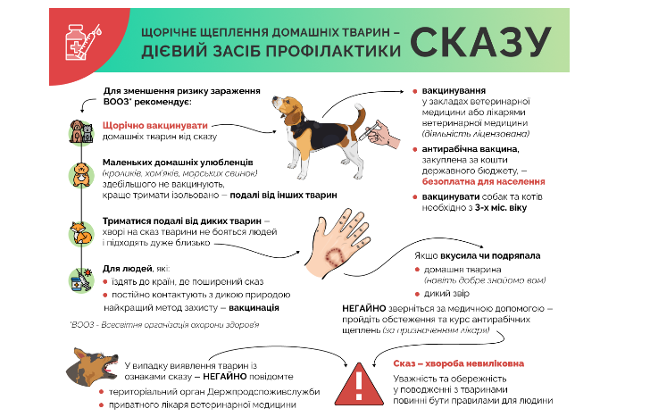 Там наголошують, що згідно інструкції «Про заходи щодо боротьби зі сказом тварин», власники тварин зобов’язані доставляти собак і котів в установи ветеринарної медицини для клінічного огляду і профілактичного щеплення проти сказу один раз в рік.