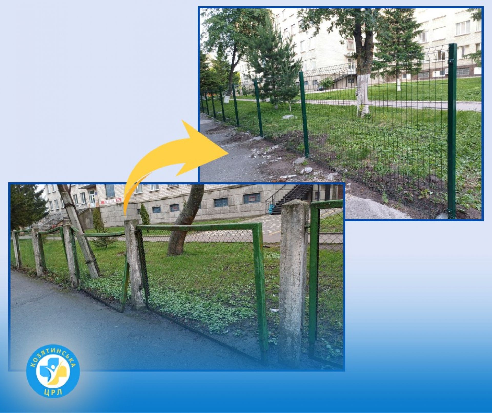 - Біля будівлі поліклініки Козятинської центральної районної лікарні триває оновлення зовнішньої огорожі — справжнє «перезавантаження» старого паркану, який уже давно втратив свій вигляд та функціональність.
