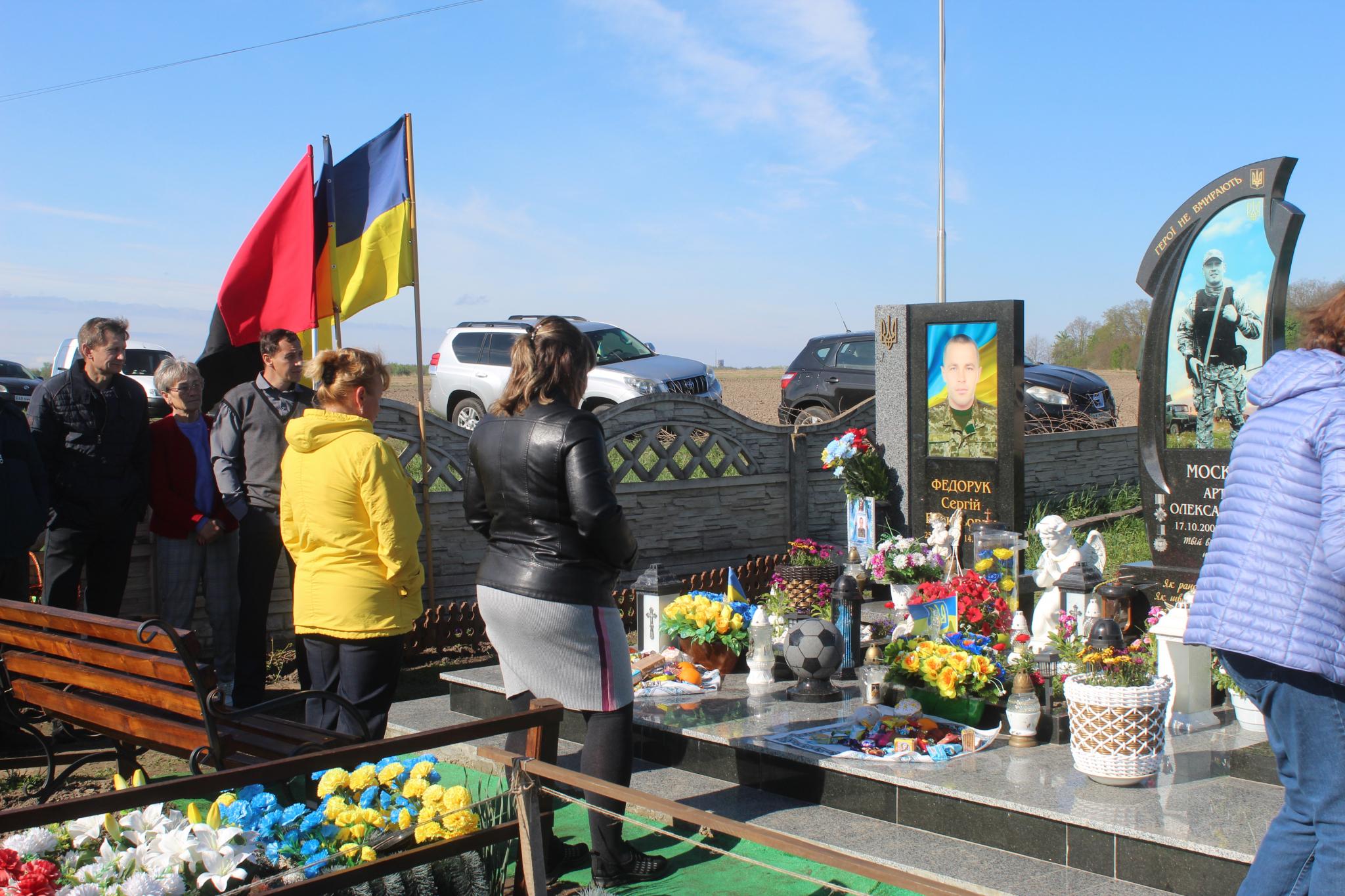 Коли ми були біля поховань Артема Москаля та Сергія Федорука, там вже вклонявся загиблим воїнам побратим з позивним «Рес». Чоловік у короткостроковій відпустці та знайшов час щоб пом’янути тих, з ким його звела доля на полі бою захищати Україну.