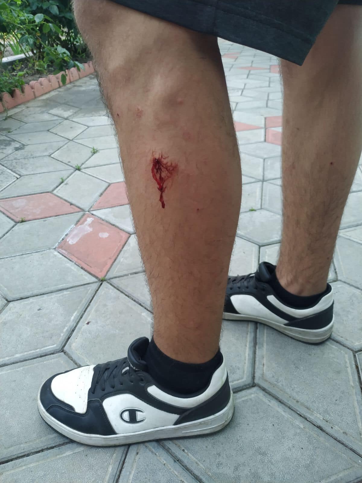 До посту дівчина прикріпила дві світлини. На фото — прокушена нога із глибокими слідами від собачих зубів.