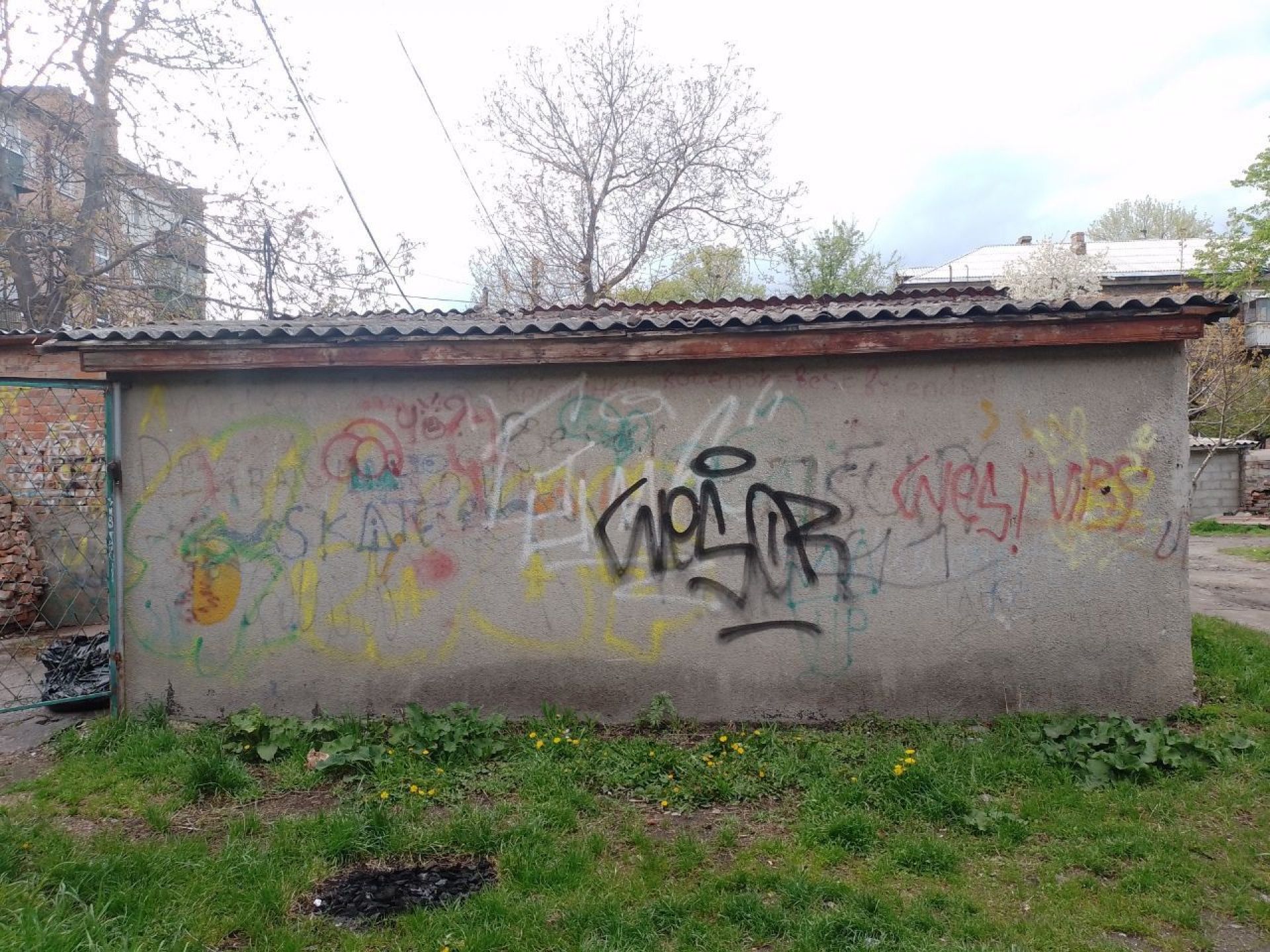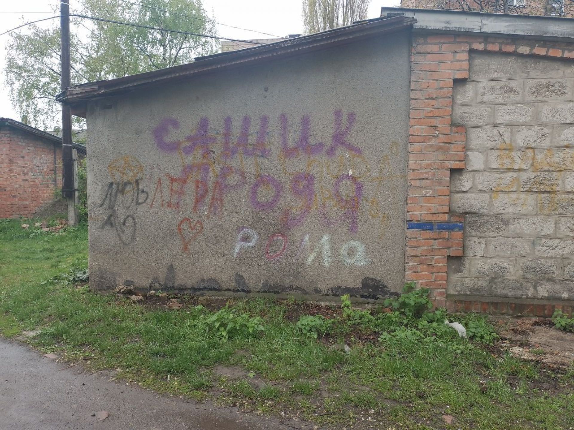 — Вже який раз тут проходжу і мені здається, що написів стає все більше і більше, — продовжує Настя. — У парку дуже часто відпочиває молодь, тому це як полотно. Графіті-вандалізму ще дуже багато на ринку, і на маленькому, і на великому. На великому базарі є гараж, який весь розмальований і так само прилавки і всередині, і зовні. Молодь найчастіше сидить у парку, на ринку, на стадіоні. Це три найпопулярніших місця. Є ще «курілка» навпроти парку, біля гаражів. Там взагалі напис про сатану і пентаграми.
