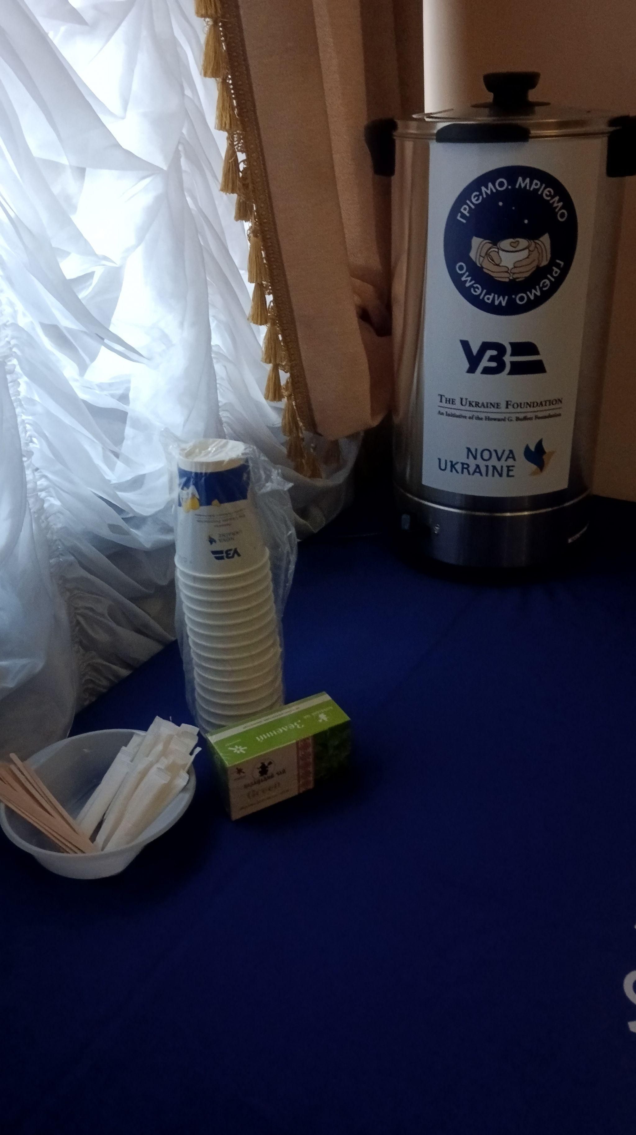 За словами працівників вокзалу, на випадок відсутності електроенергії використовують термопот. Це такий собі професійний термос на 20 літрів кип'ятку. Приготований чай розливають у паперові стаканчики з залізничною символікою, і виносять у Пункт незламності. Є цукор у стікерах. До слова, всім необхідним забезпечує благодійна організація «NOVA UKRAINE».