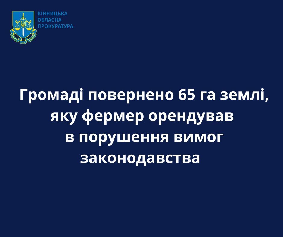 Як повідомляє пресслужба Вінницької обласної прокуратури, виконано рішення Господарського суду Вінницької області про розірвання договору оренди землі та повернення її власникові.