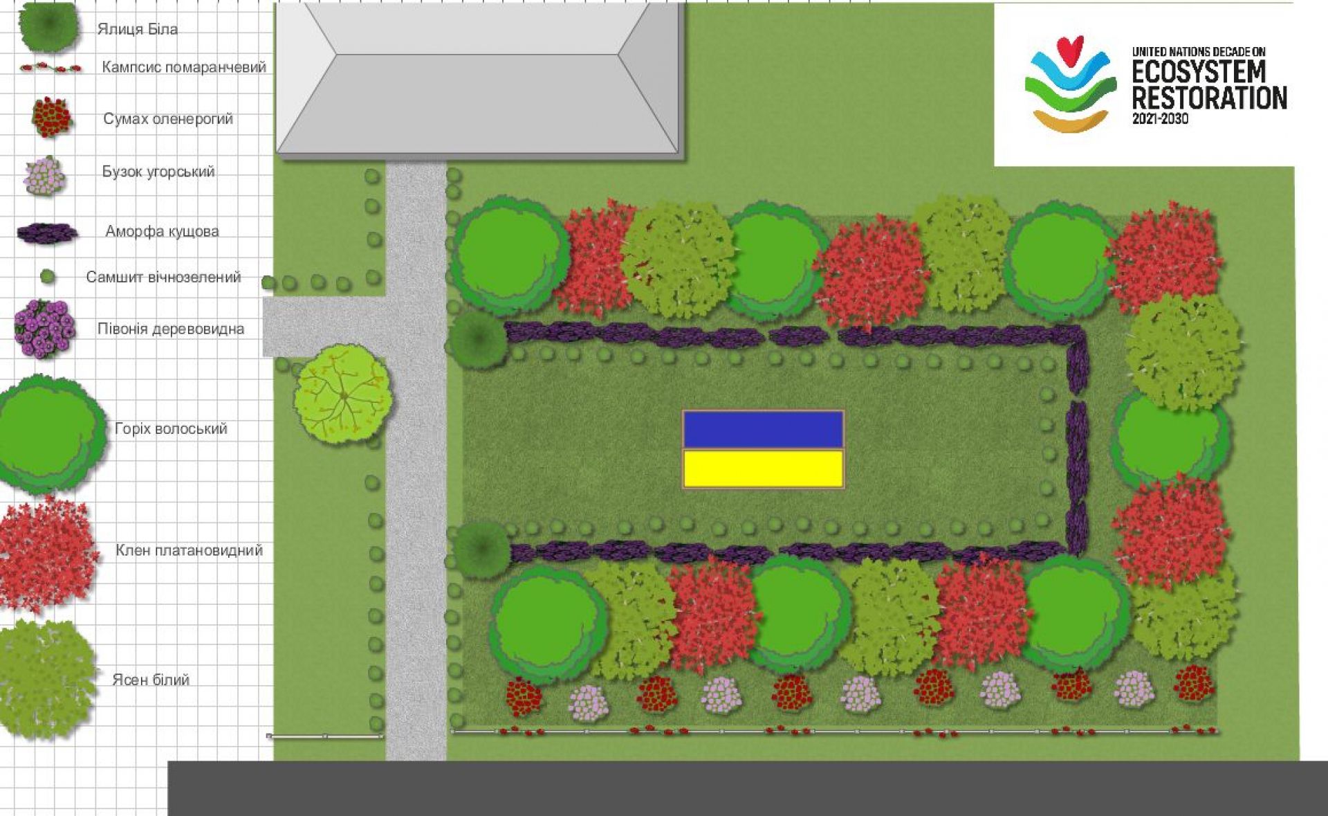 Проект та саджанці надані волонтерами програми ООН «Десятиліття відновлення екосистем» Черневич О. та Черневич М.