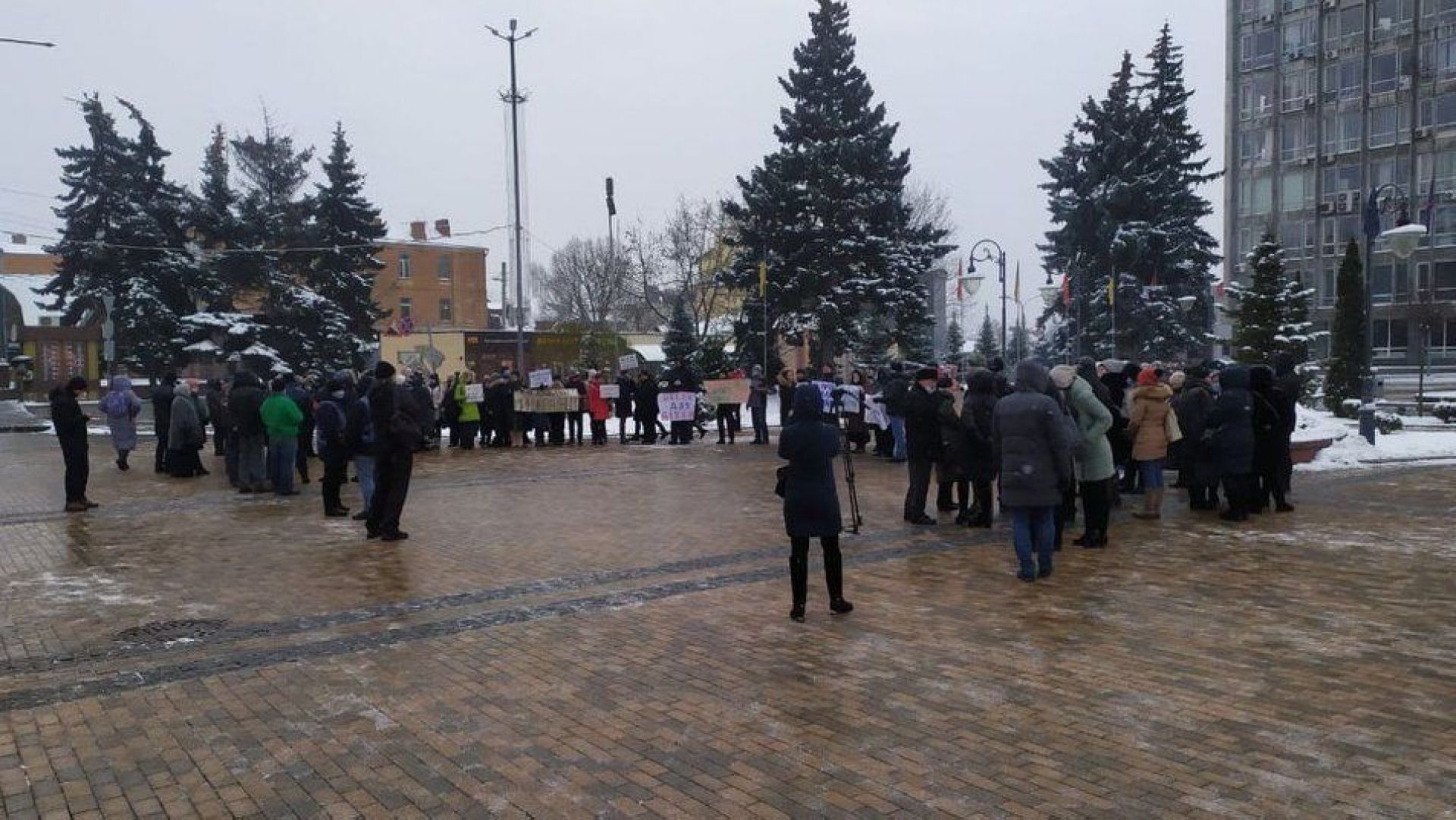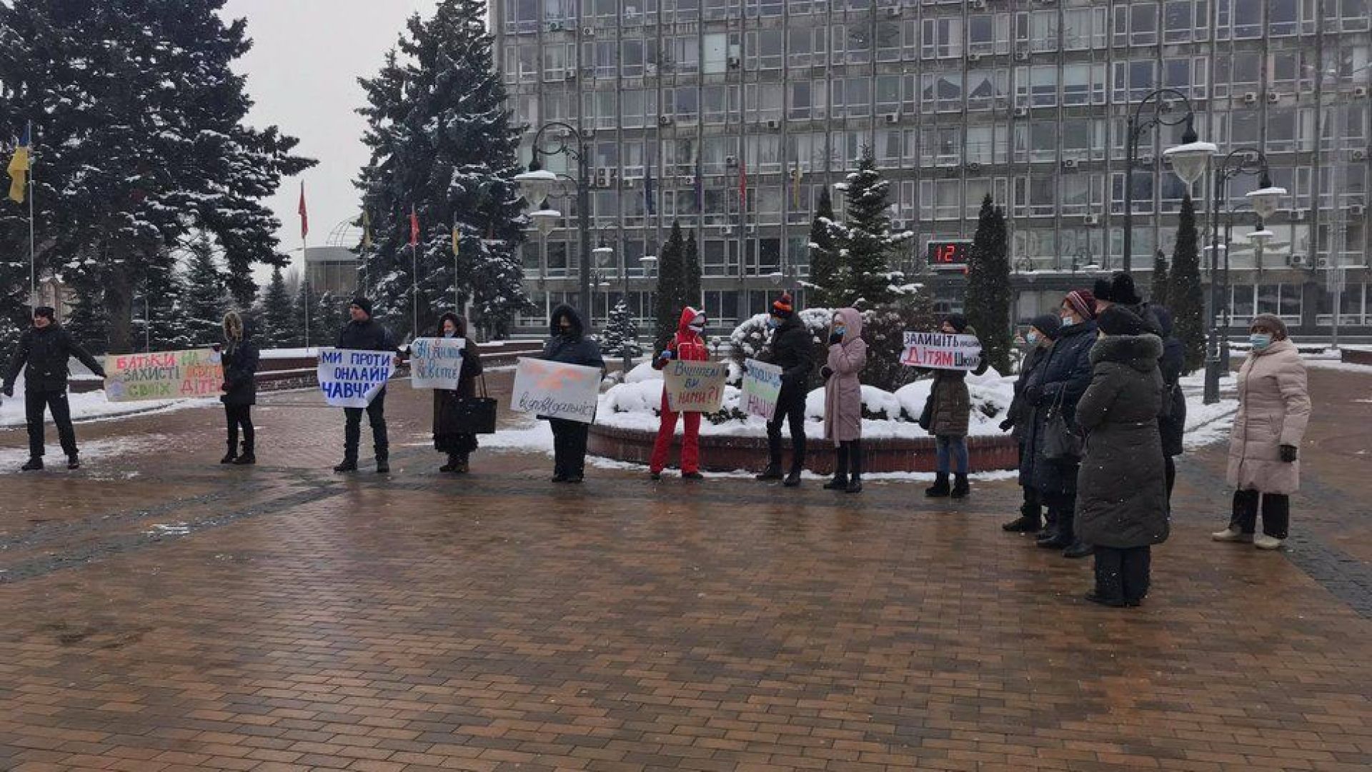 Кілька десятків людей з плакатами зібралися 17 січня біля міської ради. Вінничани виступали проти продовження дистанційного навчання.