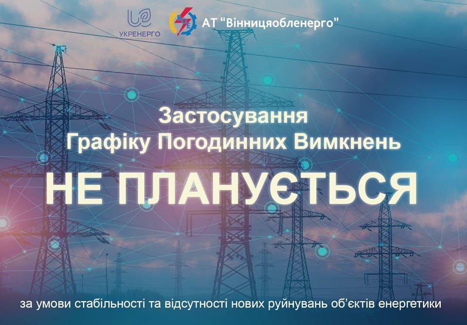 У Вінницяобленерго повідомили — через відсутність дефіциту потужності ліміти споживання до Вінницької області впродовж поточної доби не доводились.