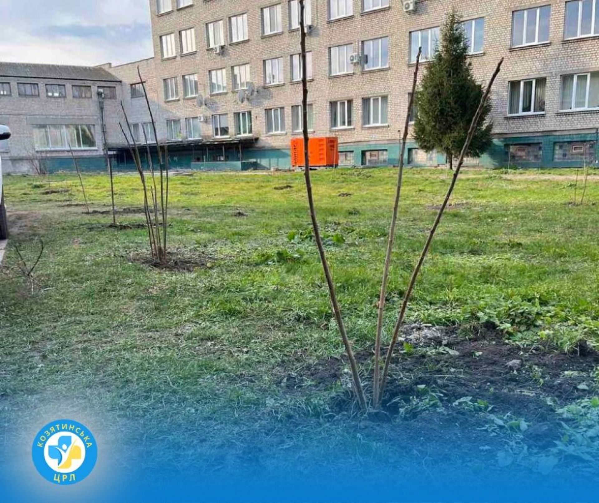 У внутрішньому дворі Козятинської ЦРЛ висадили декілька десятків нових дерев