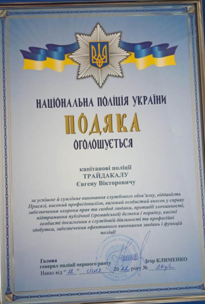 В обласному главку поліції відзначили кращих поліцейських. Серед них — Євген Трайдакало