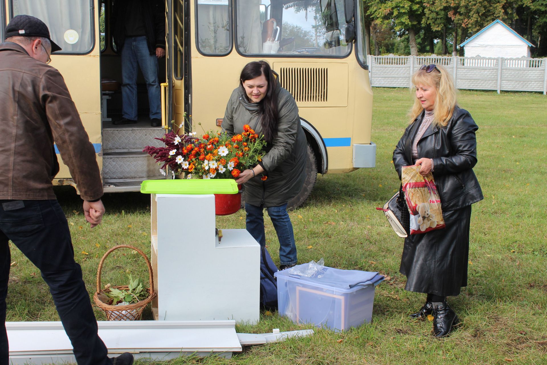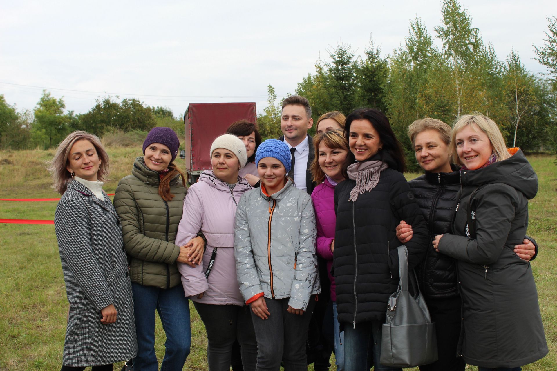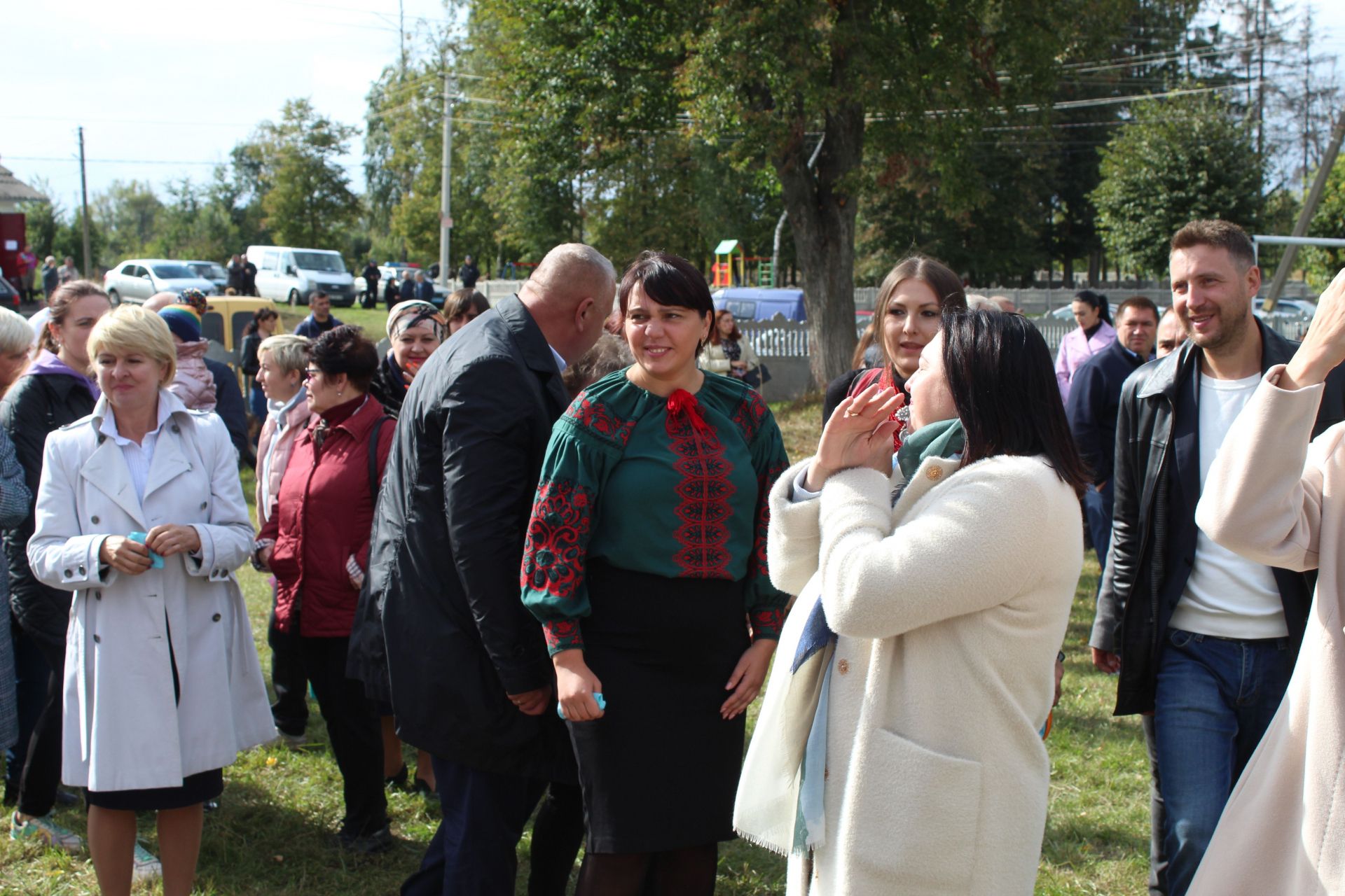 А тим часом на стадіоні змайстрували велику сцену. Педагогічний колектив рознесли 200 стільців для гостей. І без того рівні їх рядки поправлялаще рівніше одна із співробітниць учбового закладу.