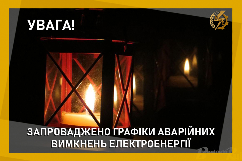 - Через складну ситуацію в об’єднаній енергосистемі України — вусіх регіонах України (крім Донецької та частини Чернігівської областей) застосовані аварійні відключення електроенергії
