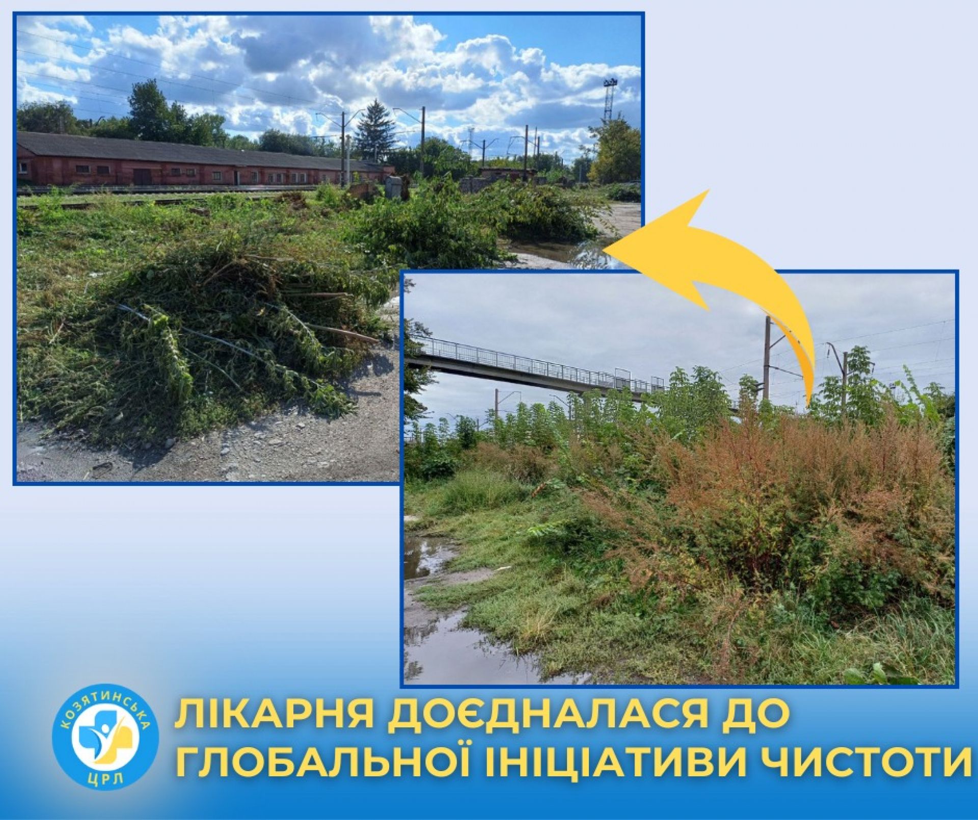 Козятинська ЦРЛ теж долучилася до Всесвітнього дня прибирання. Колектив подбав про чистоту й порядок на території громади: прибрали понад 200 метрів узбіччя дороги обабіч залізничного полотна навпроти хірургічно-адміністративного корпусу лікарні, вирізали дику поросль і кущі, покосили траву.