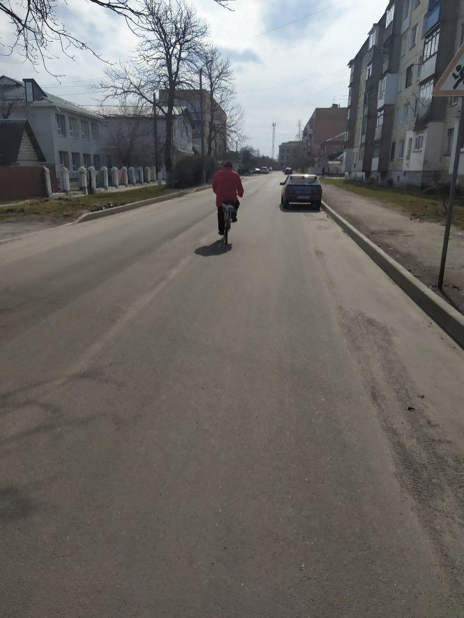 Щоправда, у нас з'явилася одна «велодоріжка» на об’їзній дорозі через Титусівку. Ніхто її спеціально не створював. На краях дороги з обох сторін дорожники провели суцільну білу лінію. Так і виникла «велодоріжка». Вона, до речі, є не зовсім безпечною для велосипедистів. Адже машини їдуть на великій швидкості, а це – просто узбіччя.
