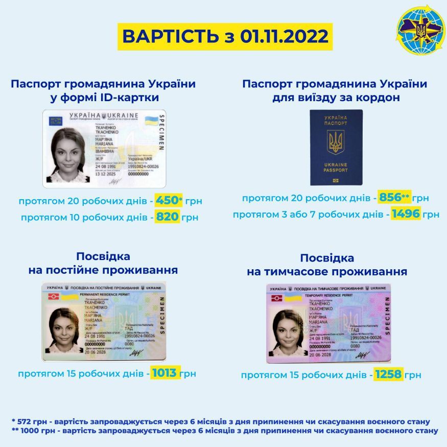 - Із 1 листопада 2022 року змінюється вартість оформлення біометричних документів — паспорта громадянина України у формі ID-картки та паспорта громадянина України для виїзду за кордон