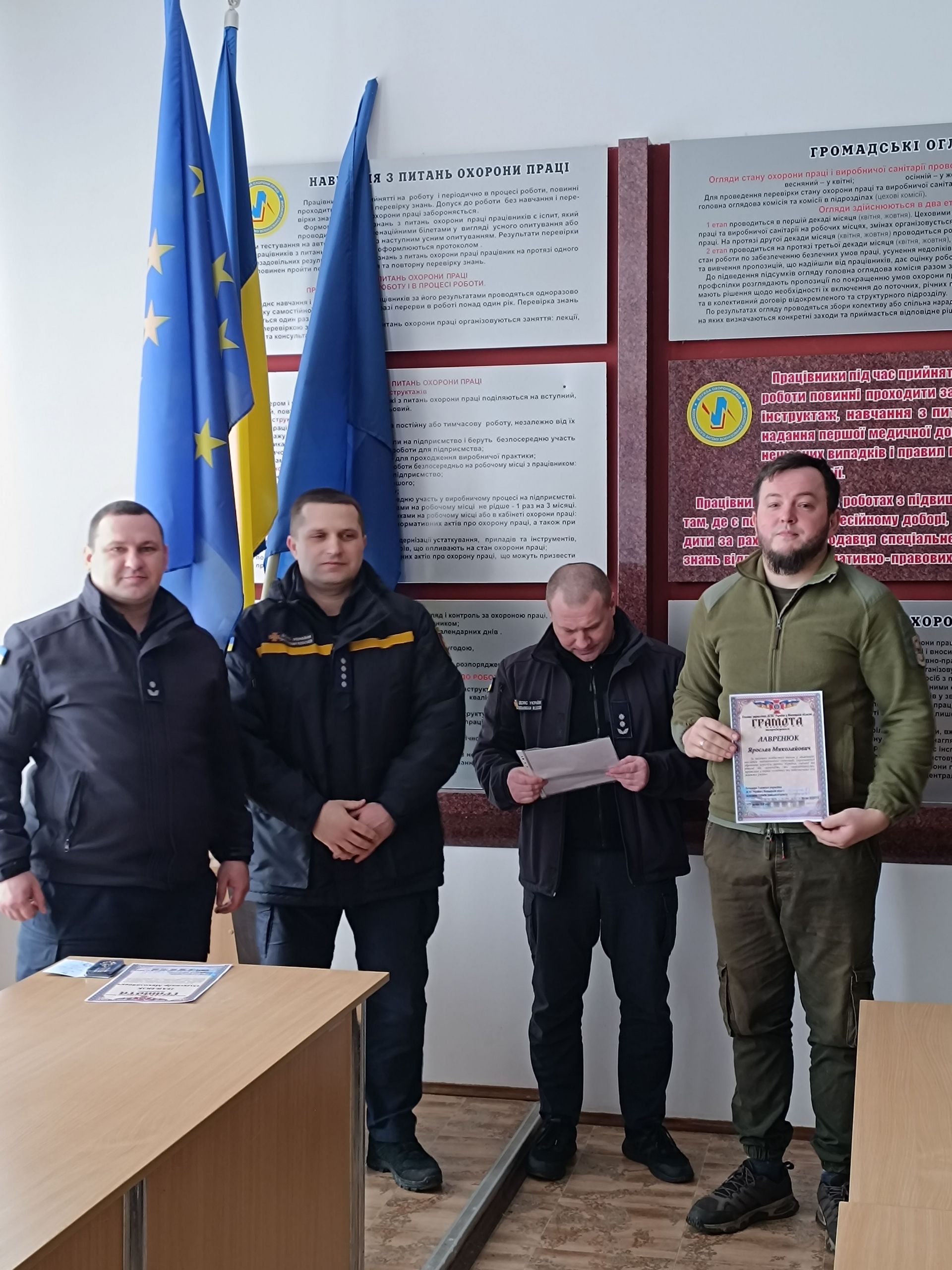 - Грамоту Головного управління ДСНС у Вінницькі області отримав начальник відділення пожежного поїзда станції Козятин Козятинського загону воєнізованої охорони Ярослав Лавренюк