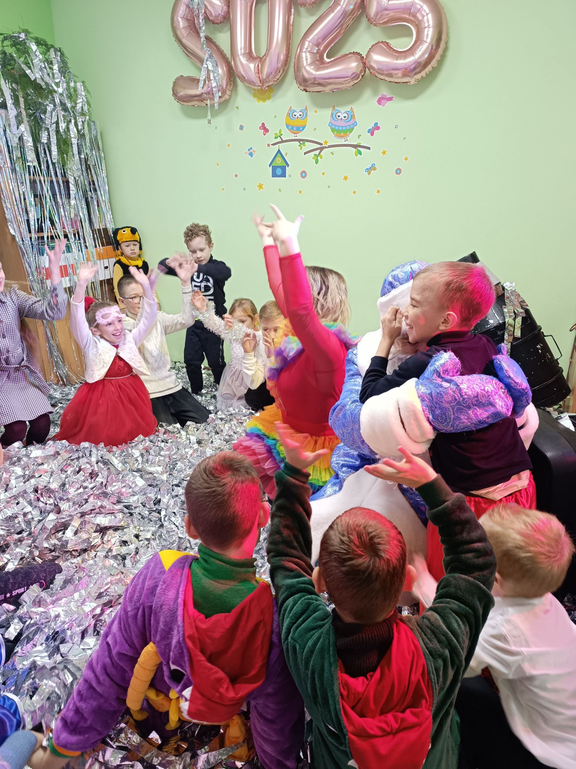 Разом із Веселинкою діти пограли у рухливу гру: присідали, піднімалися, стрибали на одній нозі, потім на іншій, підіймали руки до гори та аплодували. Настав час ще більших веселощів. Веселинка запропонувала дітям показати, як вони вміють танцювати. Угору піднялася срібляста мішура. Увімкнулася музика. Хлопчики з дівчатками танцювали під патріотичні та веселі пісні, а довкола літала мішура. Коли дискотека завершилася, настав час кликати Святого Миколая.