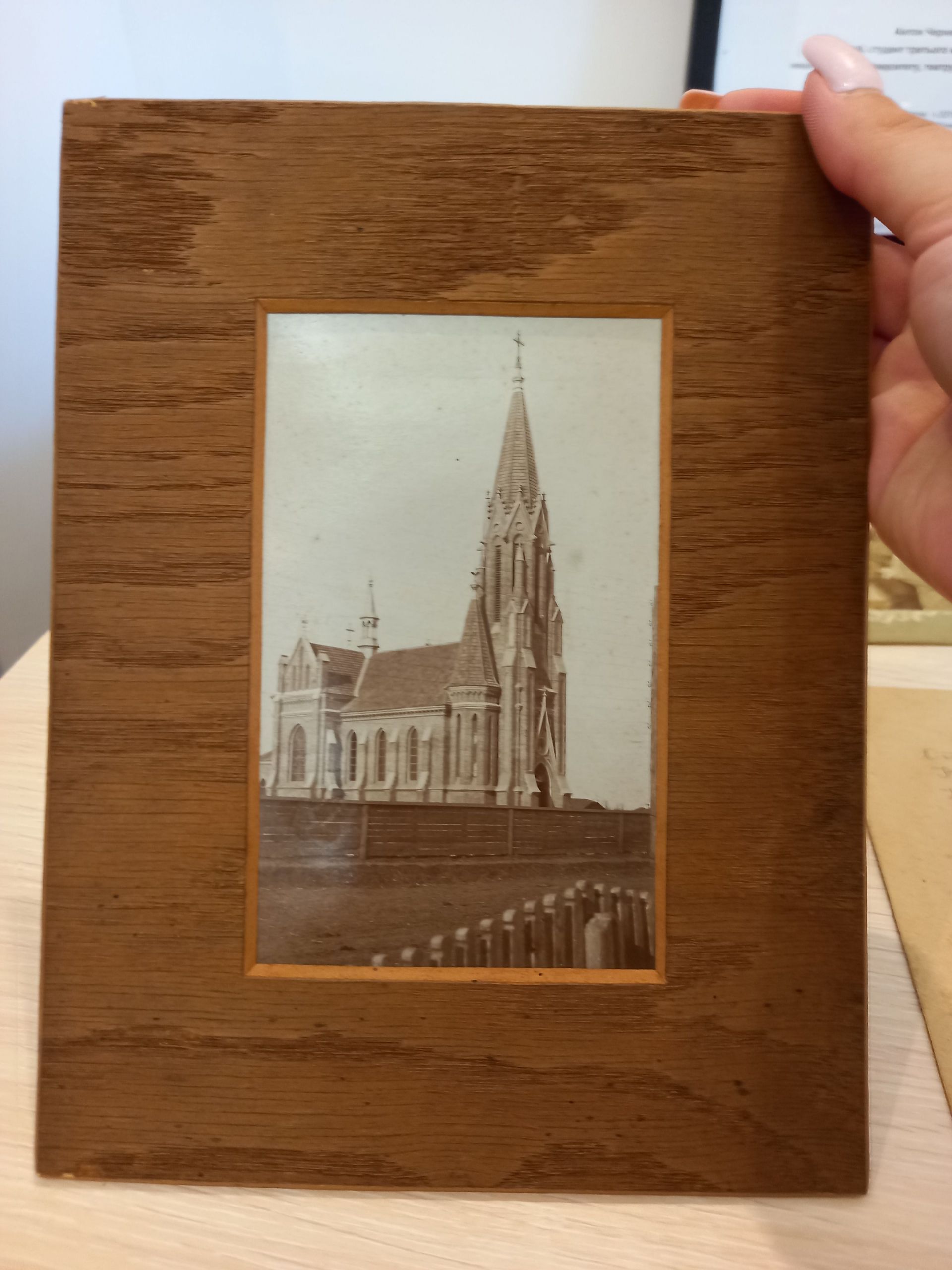 У колекції Іоанна Приходько є світлина ще одного храму, який колись був у Козятині. Це костел Матері Божої Доброї Ради, схожий за стилем на відомий костел Святого Миколая у Києві. Святиню теж можна побачити виключно на фото — її підірвали більшовики, а уламки черепашняку використали під час будівництва першої школи. До сьогодні ми бачили на фото лише те, як виглядав фасад будівлі спереду. А на світлині Іоанна Приходько костел зображений у півоберта.