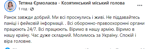 А сьогодні Тетяна Єрмолаєва закликала людей до спокою