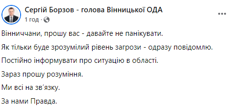 Годину тому опублікував своє звернення і голова Вінницької ОДА Сергій Борзов