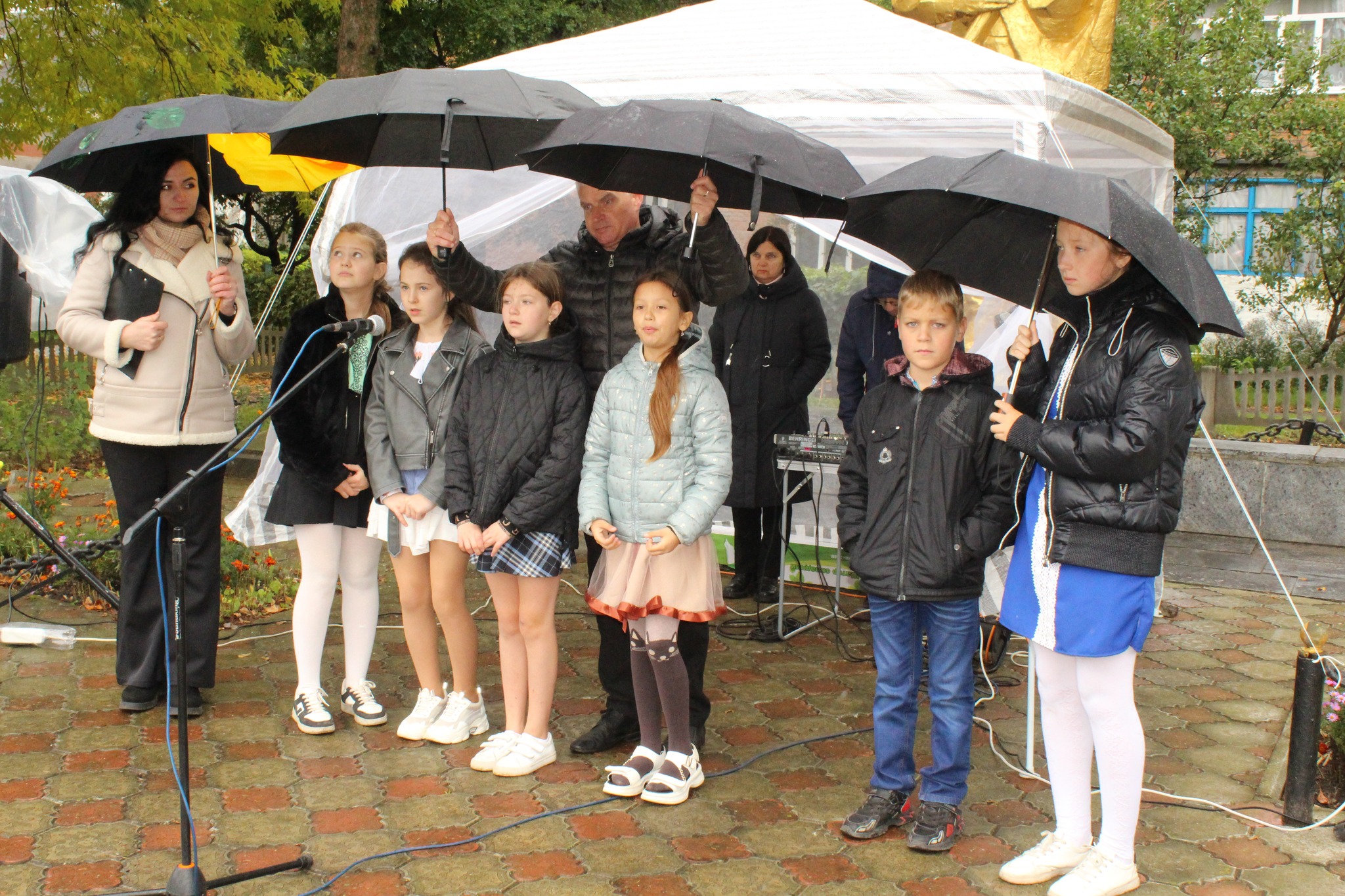 та директор гімназії Валерій Кушкевич з учнями. Вірші, які прочитали учні, до глибини душі вразили і дорослих, і дітей.