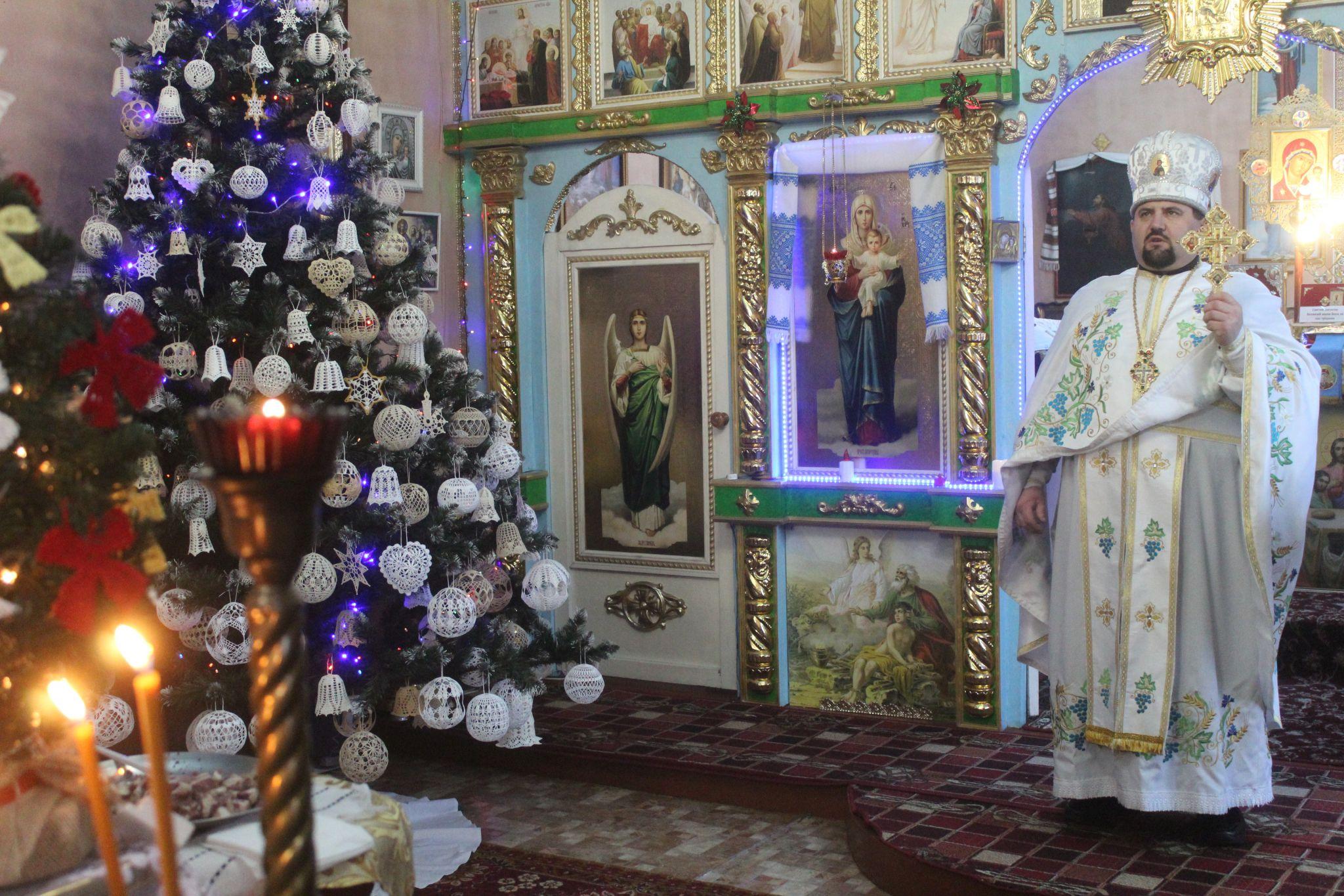 — Нехай новонароджений Ісус Христос увійде з колядками у кожну домівку, розвеселить кожну родину і кожну християнську душу. Нехай новонароджений Ісус Христос розвеселить кожного солдата і принесе нам в Україну Мир, злагоду і припинення війни. Сьогодні я найперше хотів би подякувати нашим воїнам-захисникам, лікарям, волонтерам, які допомагають і стоять на захисті нашої неньки України. Якби не вони, то невідомо чи стояли б ми сьогодні у цьому храмі і святкували це величне свято Різдво Господа нашого Ісуса Христа. Тому нехай новонароджений Ісус Христос подасть всім воїнам захисникам і захисницям многії і благії літа, — сказав отець Василь