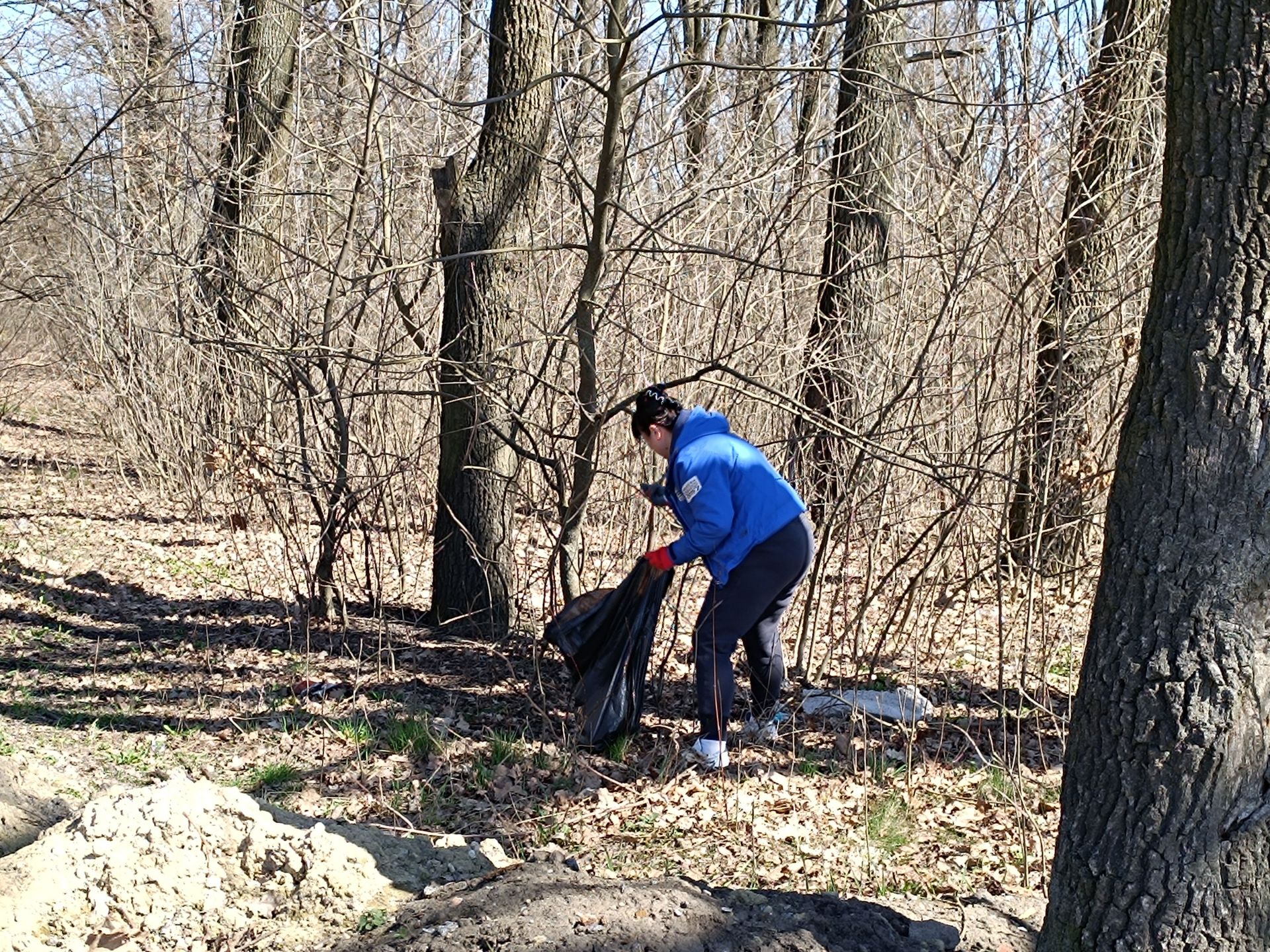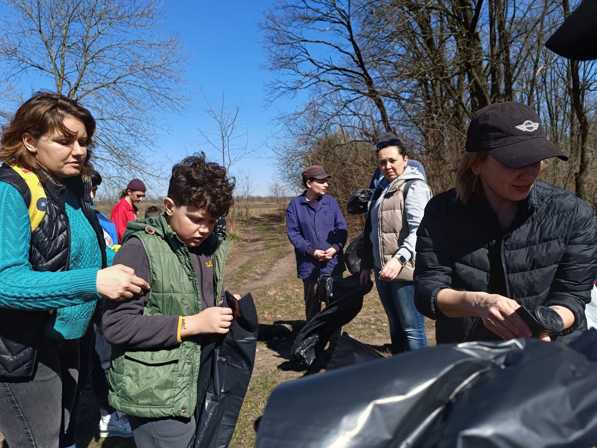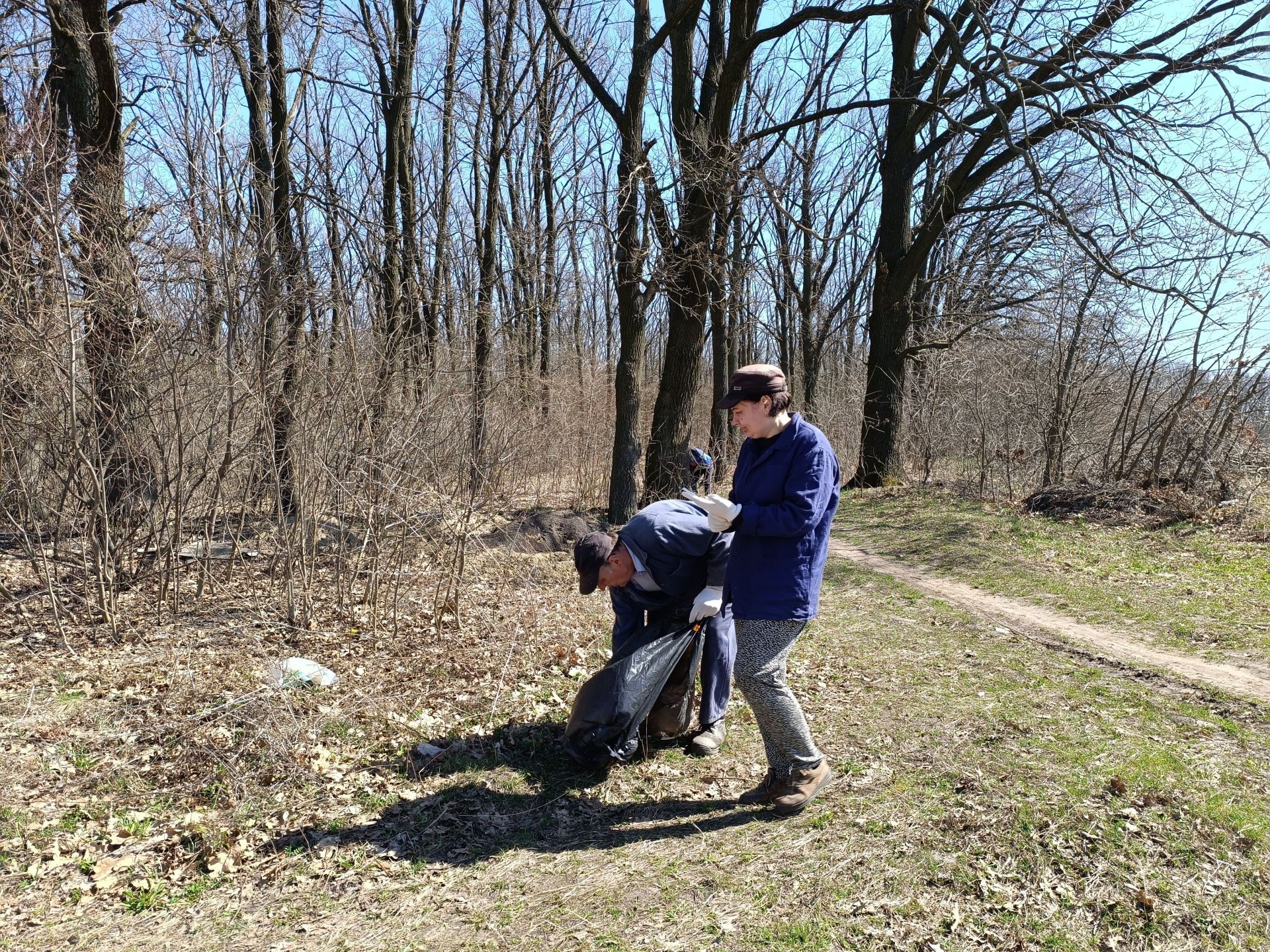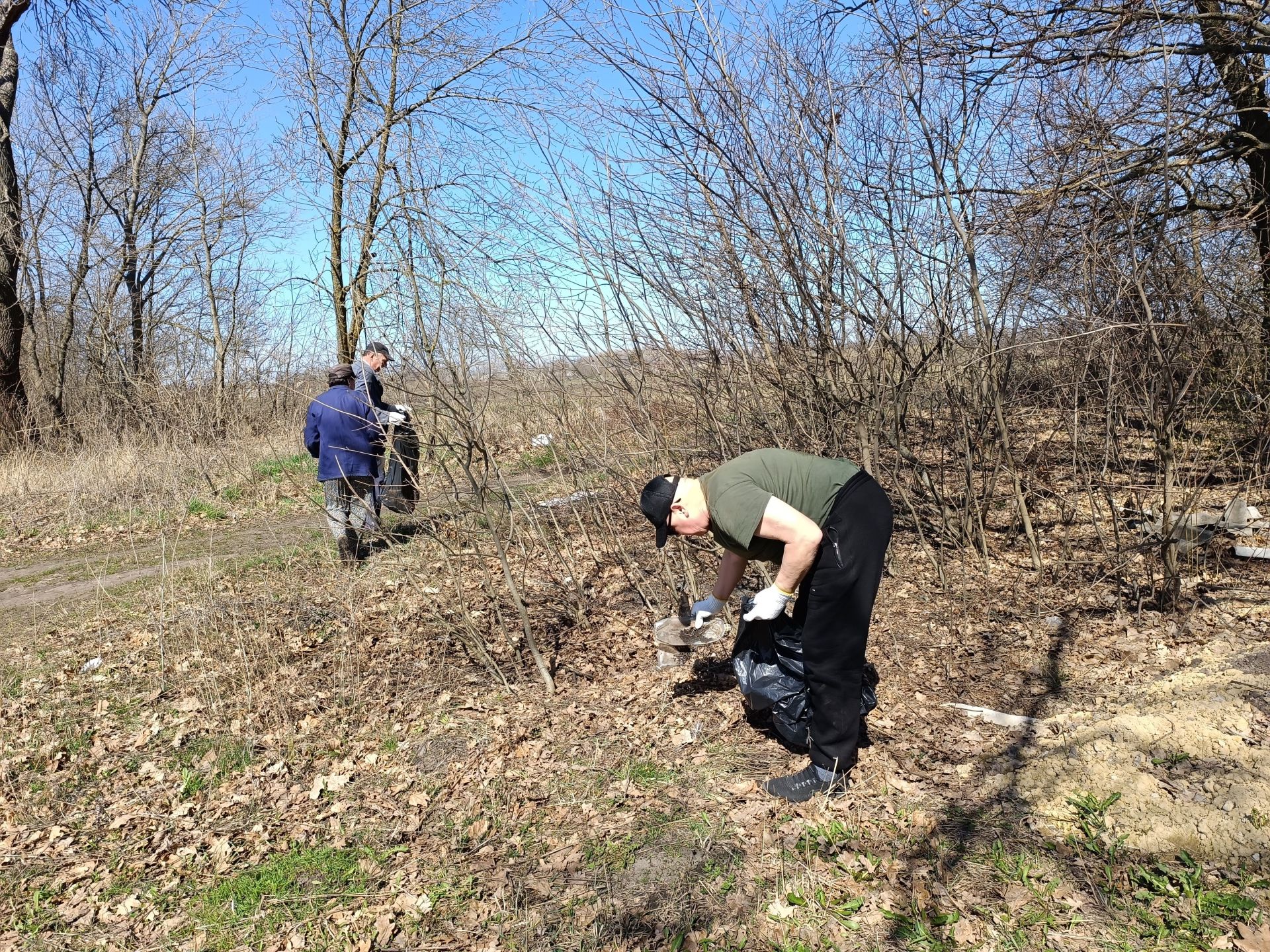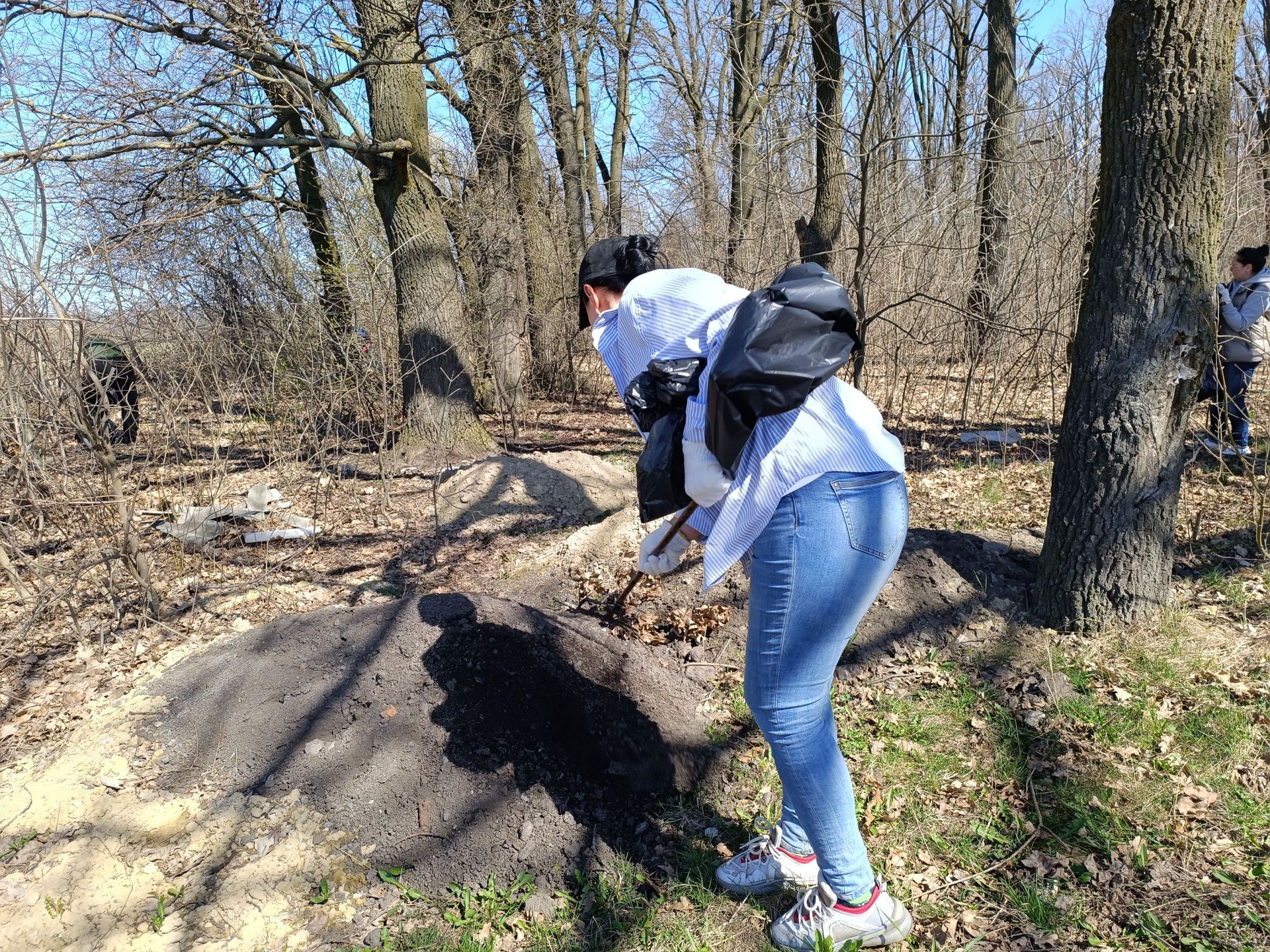 Учасники екоакції розбиваються на невеликі групи і без зайвих зволікань беруться до роботи, адже її реально багато. Вони пильно приглядаються до кожного кущика. На самому краєчку лісу дещо чистіше, трохи далі все завалено сміттям. Склалося таке враження, що його сюди просто зносять, замість того, щоб винести на машину для збору твердих побутових відходів, яка вивозить сміття з посьолка кожного тижня.