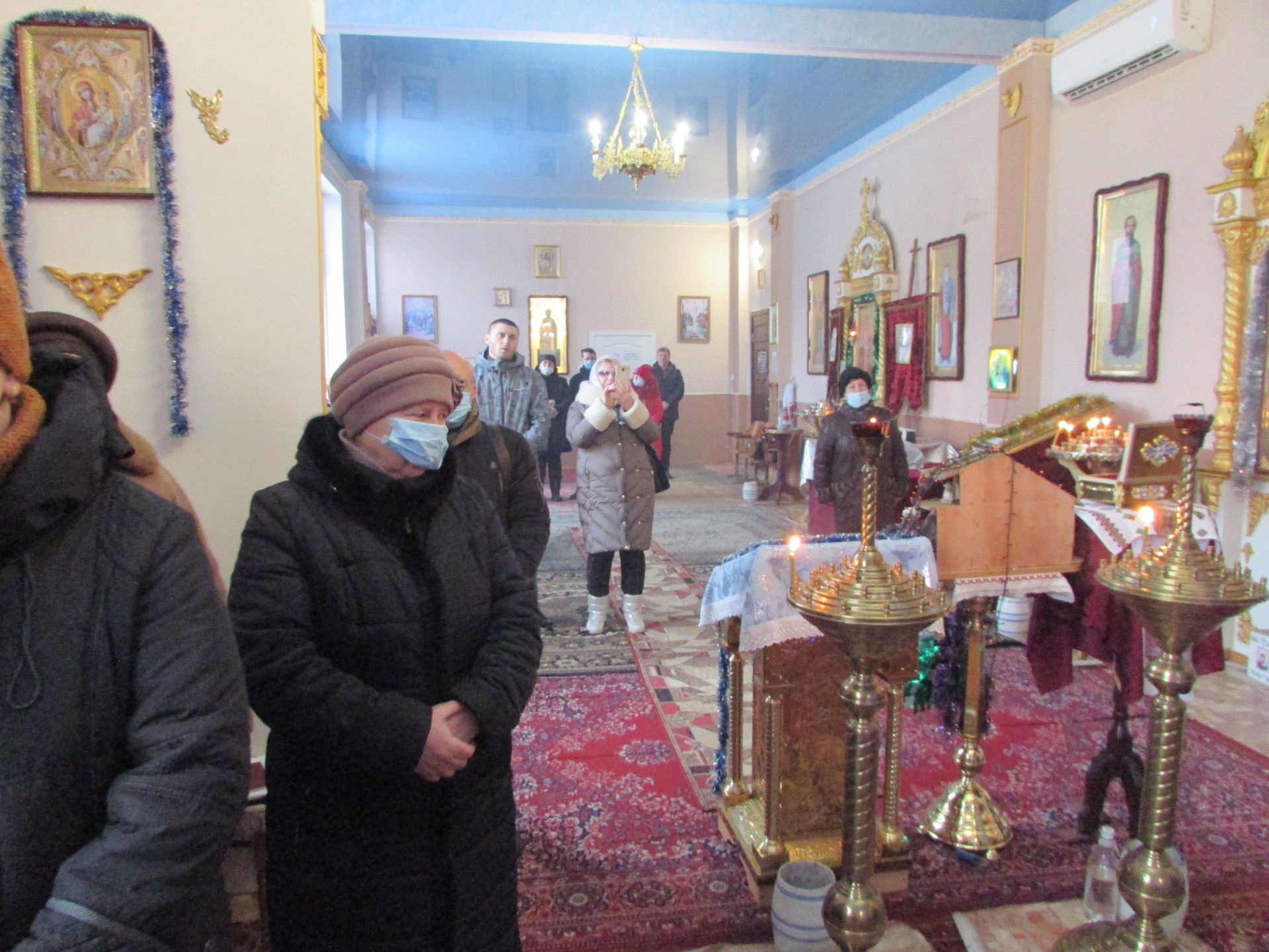 Коли на дворі розвиднілось посівальники розійшлися по власних домівках, а для дорослих свято тільки починалося. Віряни пішли до церкви адже в цей день у храмі відзначали потрійне свято. Ми за традицією пішли до храму Покрови пресвятої Богородиці. Цього разу цю церкву потрібно було відвідати і з іншої причини. Настоятелем храму там винуватець ще одного свята Василя Великого Отець Василь. Священик провів службу Божу, яку написав Василь Великий. В Божественній літургії отець Василь звернувся до Всевишнього в молитві, щоб той допоміг людям подолати коронавірус, а українцям, щоб настав мир на сході нашої держави. Після служби Божої священик розповів про всі три свята і засіяв прихожан зерном та солодощами.